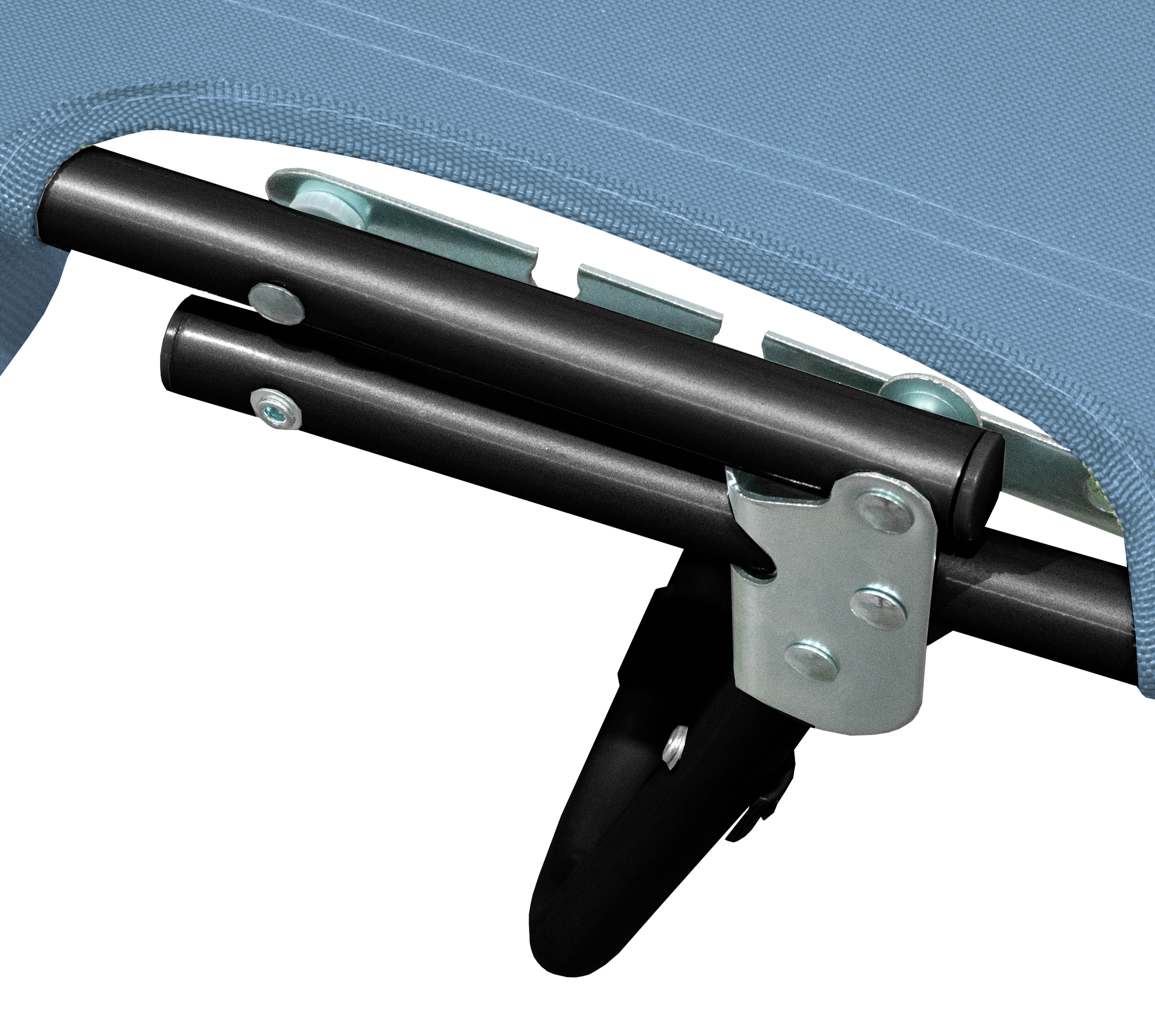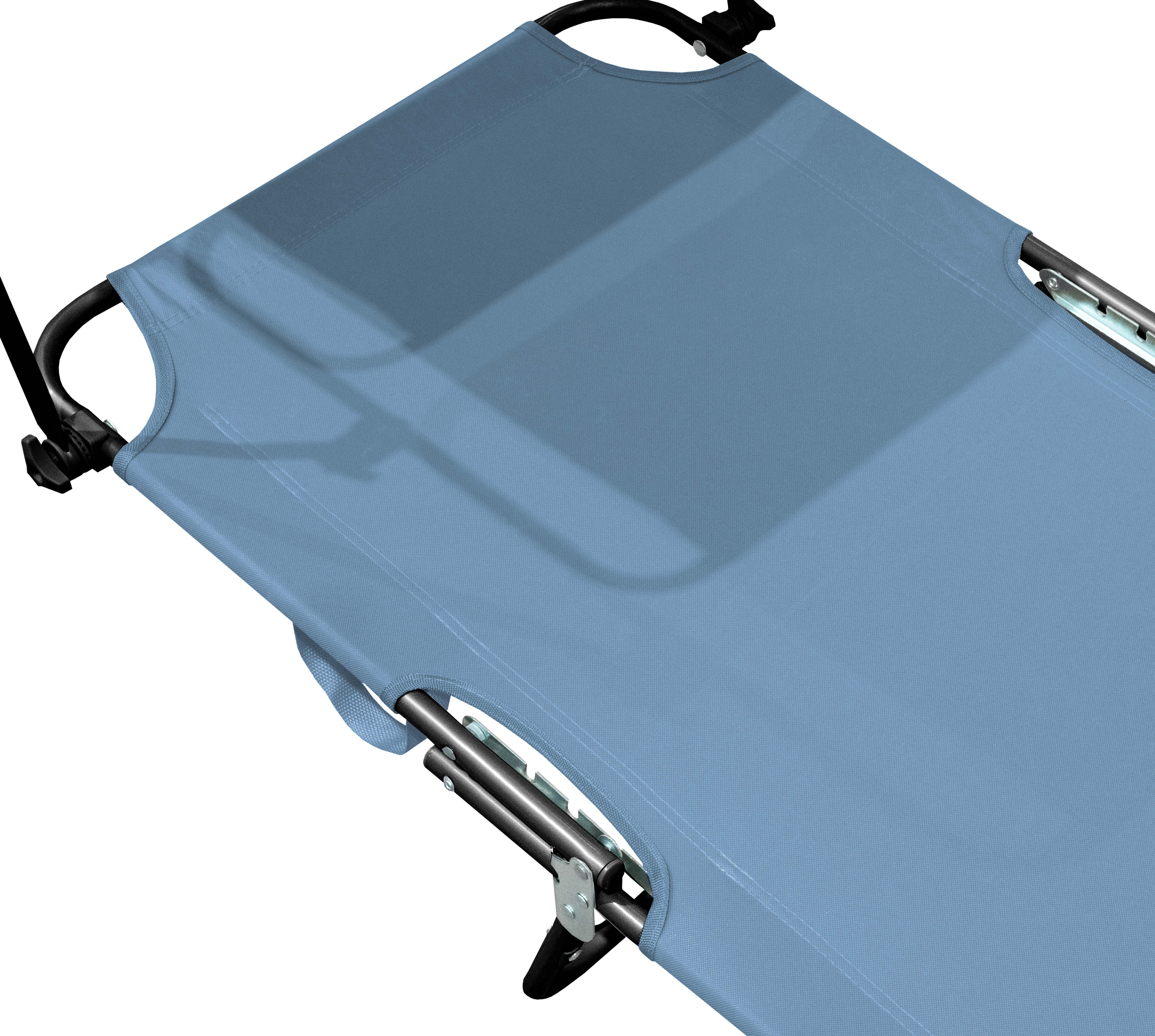 Der Bezug der Liege ist aus einem luftigen, dennoch sehr robusten Material Oxford 600D gefertigt, das für jedes Wetter geeignet ist, UV-Strahlung standhält und nahezu wartungsfrei ist.