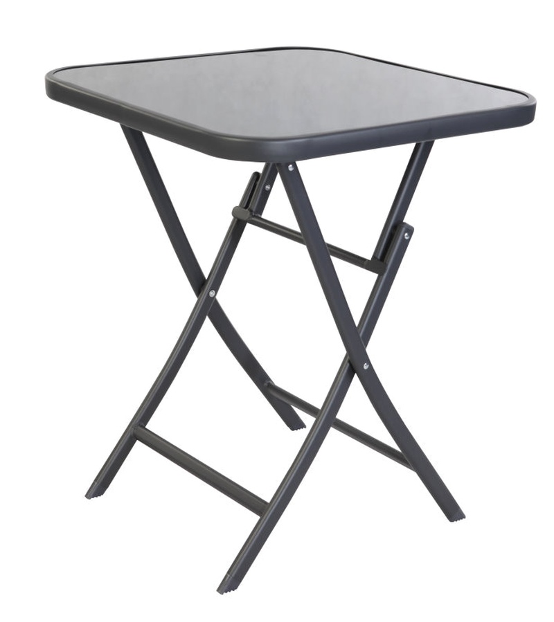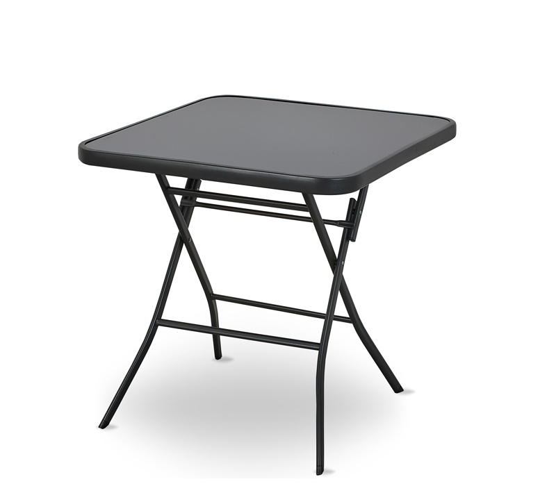 Klappbarer Gartentisch mit massivem Metallgestell und Glasplatte, ideal für den Garten, terrassen, Pavillons, Balkone, aber auch für die Innenausstattung von Restaurants und Cafés.