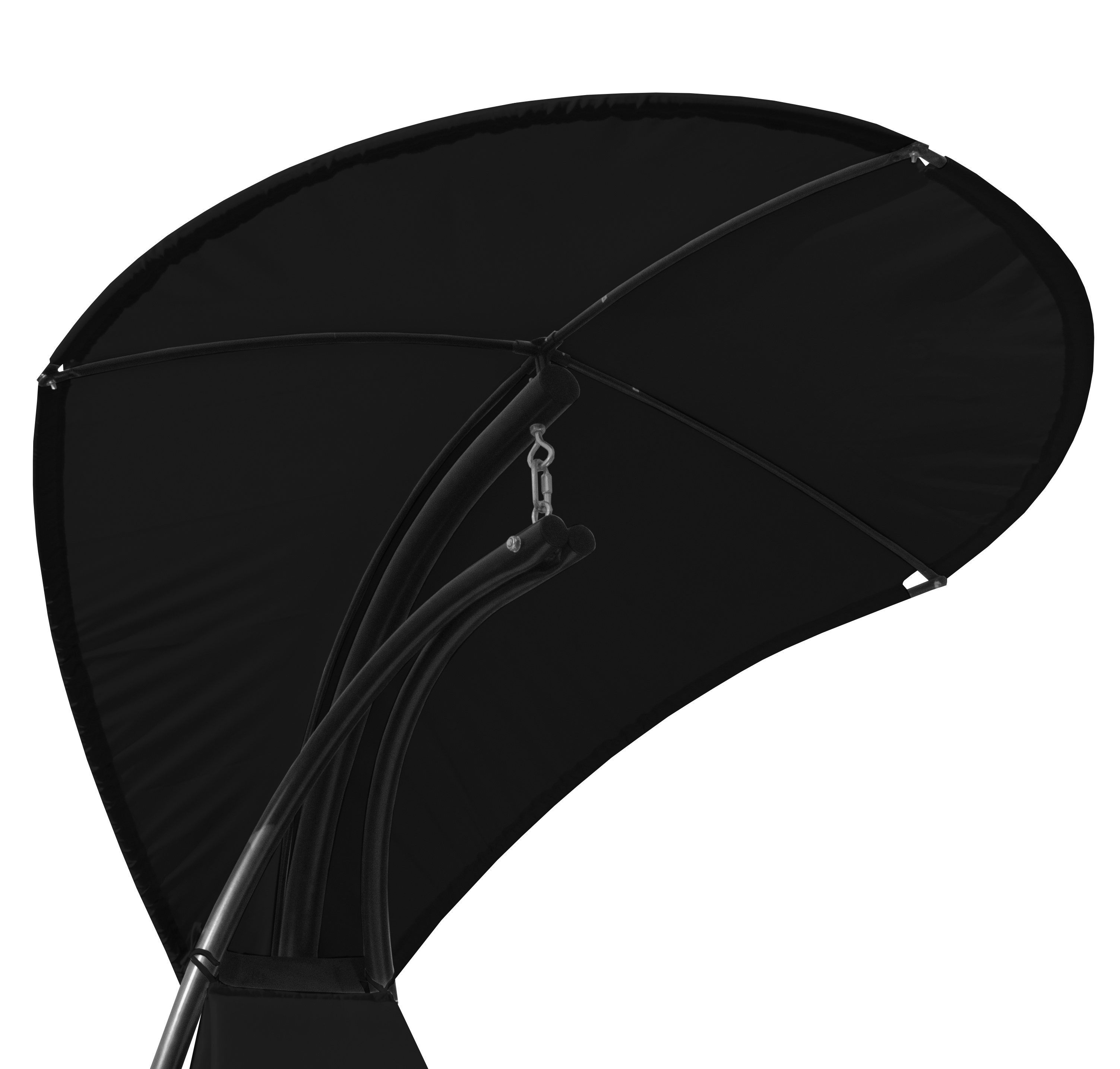 Die elegant gestaltete Konstruktion des Sessels bietet auch ein Verdeck. Das Dach bietet Ihnen gegebenenfalls Schutz vor der Sonne.