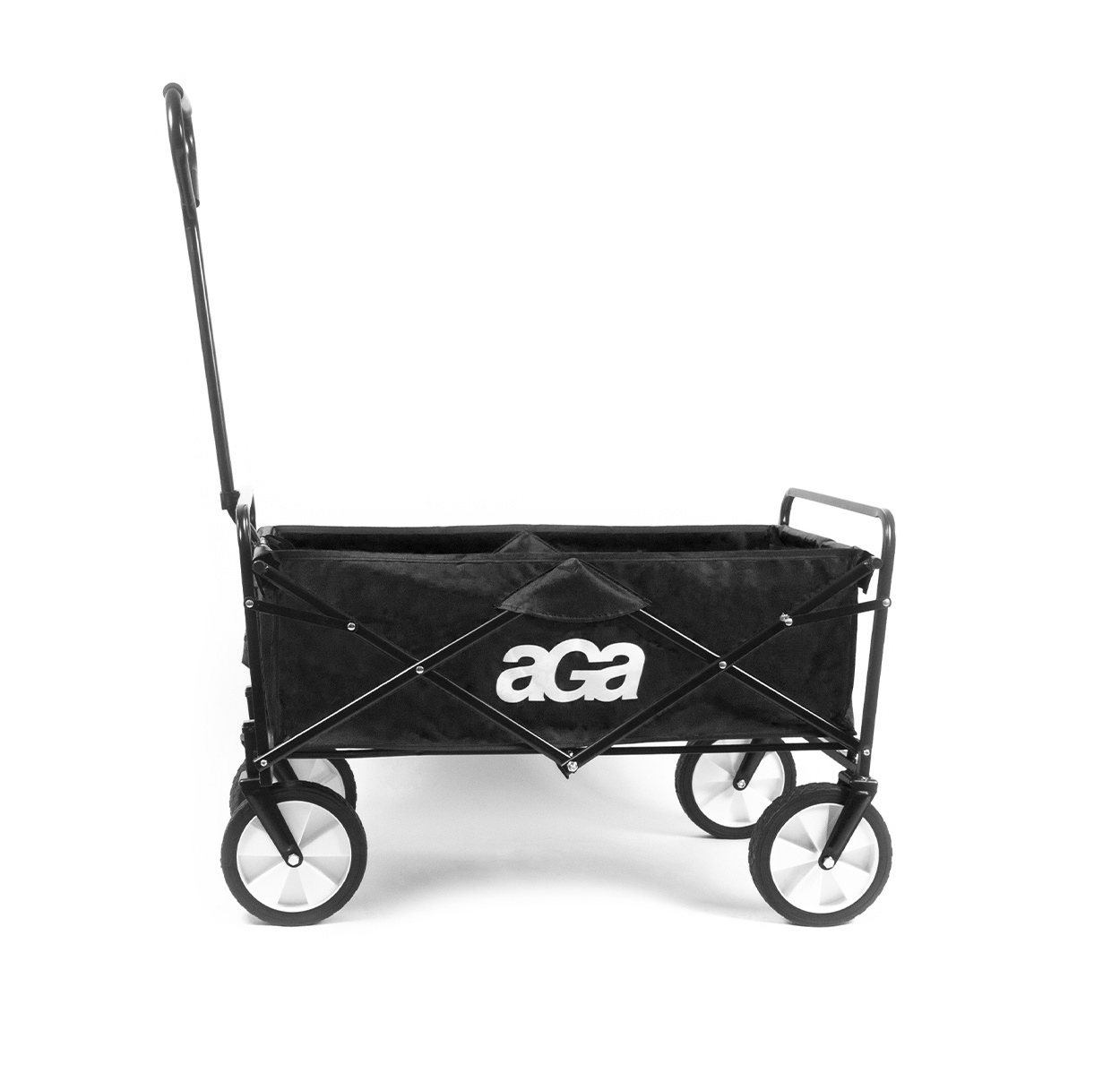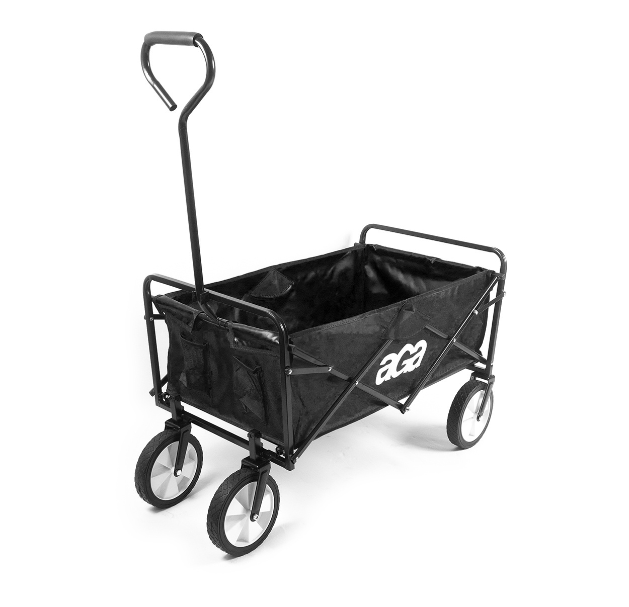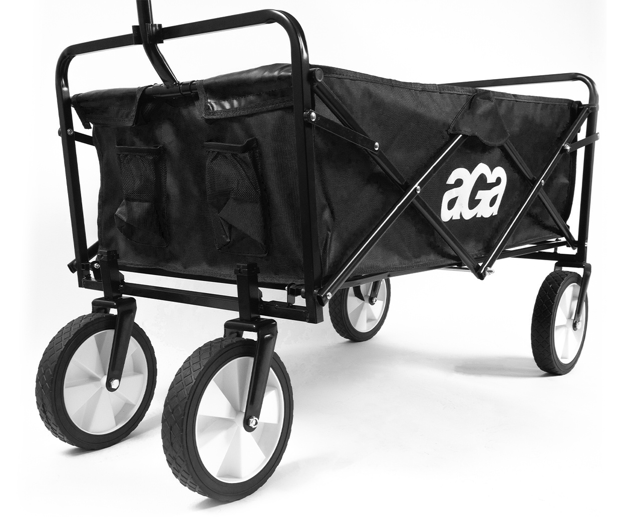 Aga Bollerwagen Gartenwagen faltbar mit Griff & Getränkehaltern bis 80 kg, Handwagen Outdoor MR 4610 Black