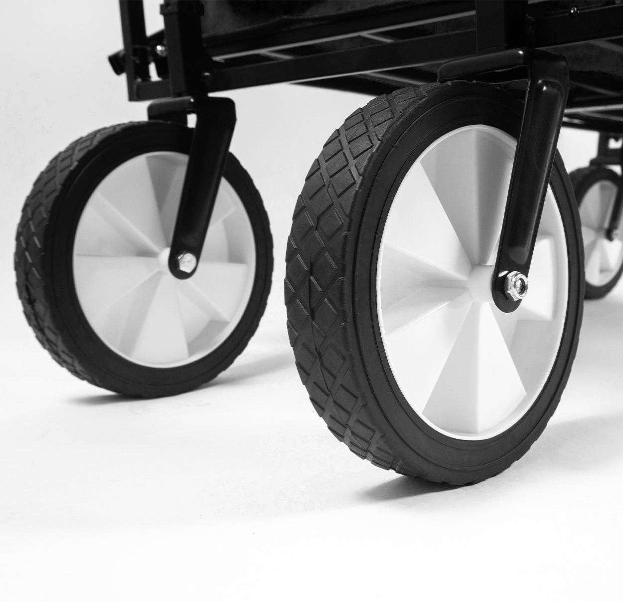 Dank des großen Laderaums passt alles, was Sie brauchen, in den Wagen und wird auf robusten Kunststoffrädern transportiert.