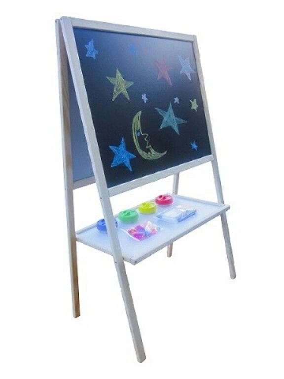 Zweiseitige Kindermagnettafel mit Ablagefach, auf einem praktischen Ständer, von der Firma Aga4Kids.