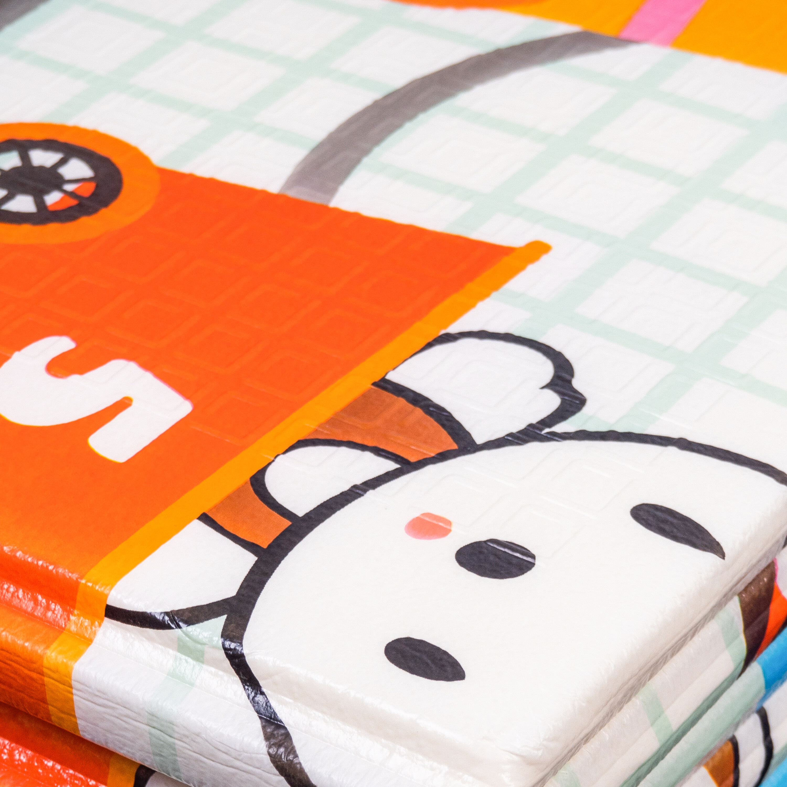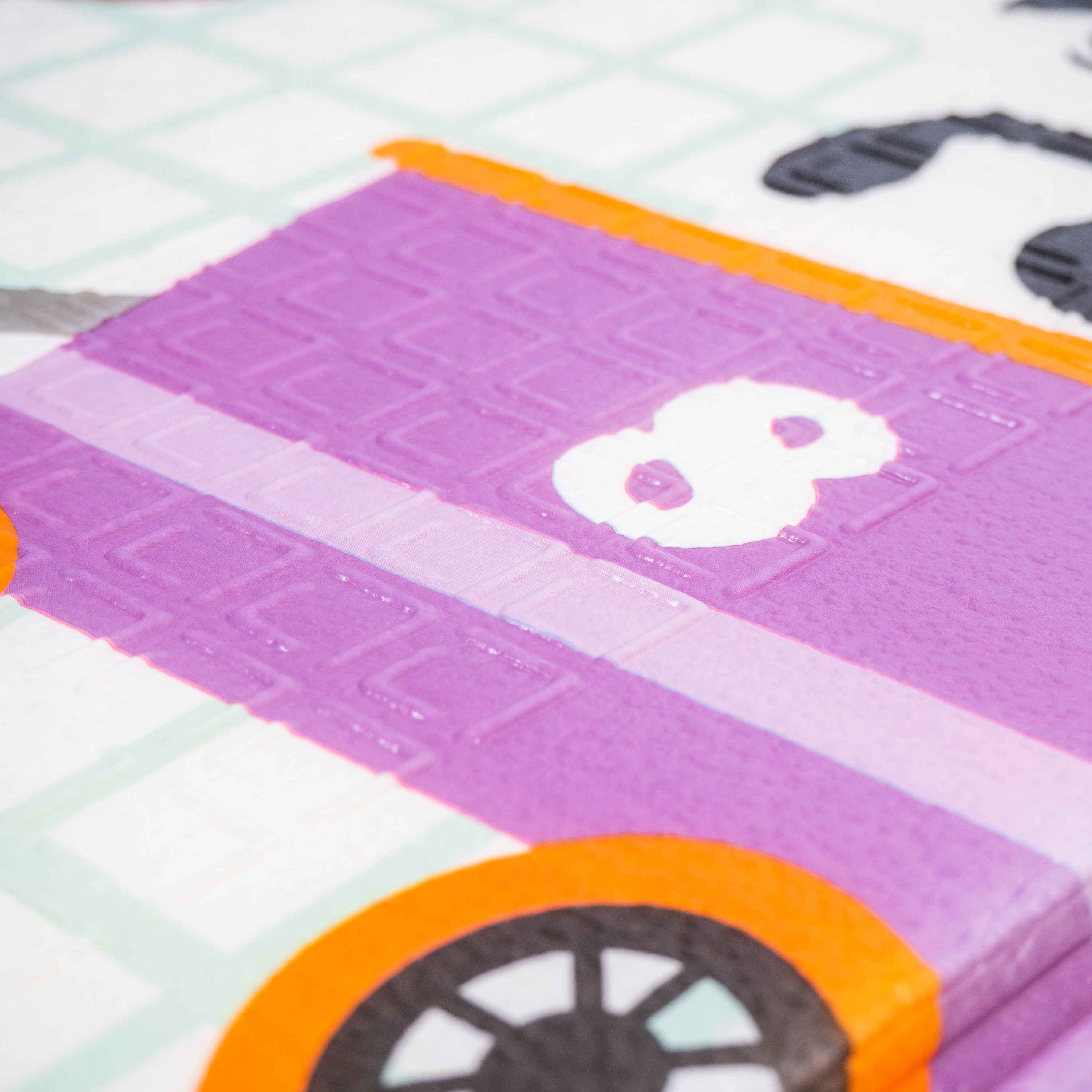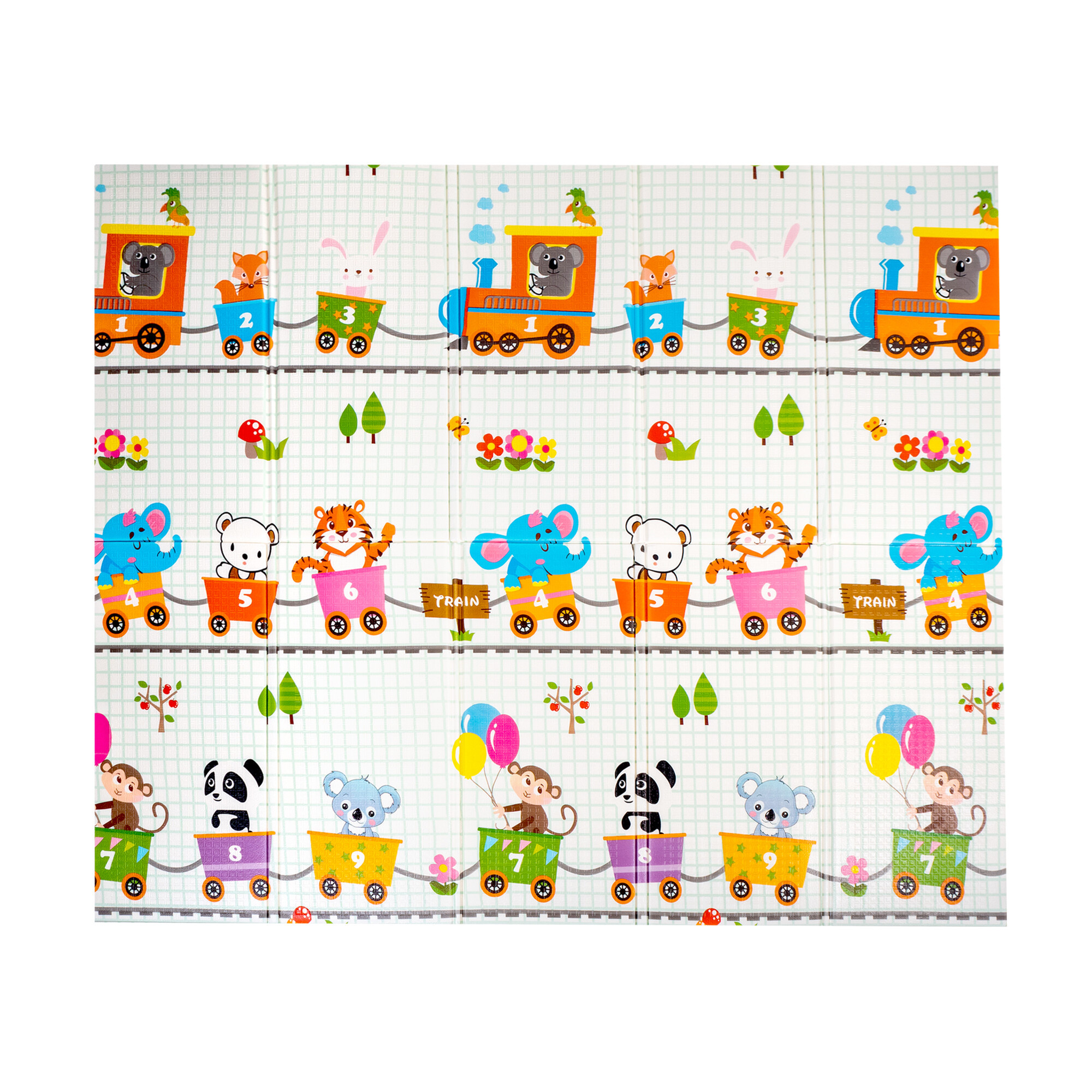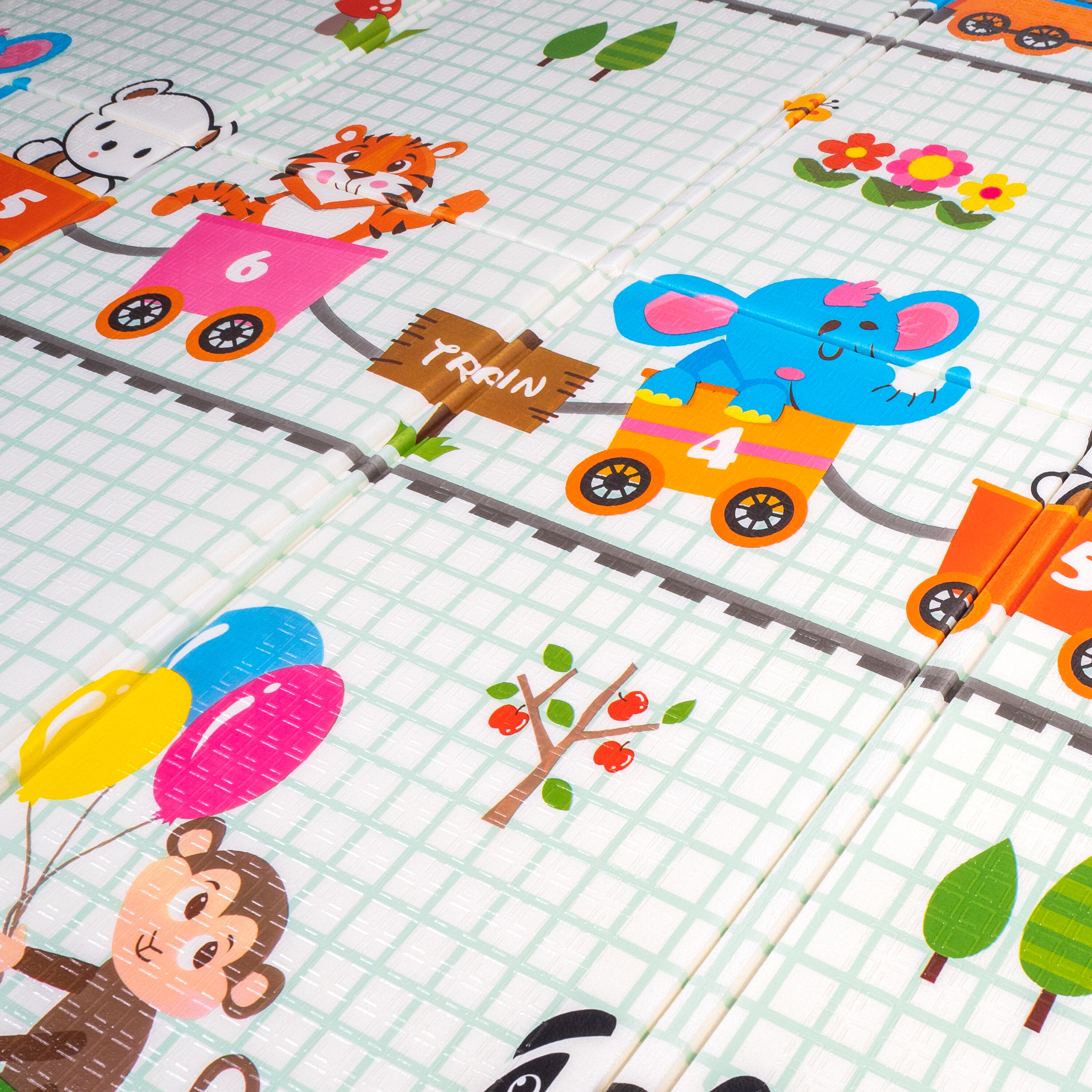 Die Spielmatte hat einen beidseitigen Druck mit fröhlichen Motiven und die rutschfeste Oberfläche sorgt für die Sicherheit bei jedem Spiel.