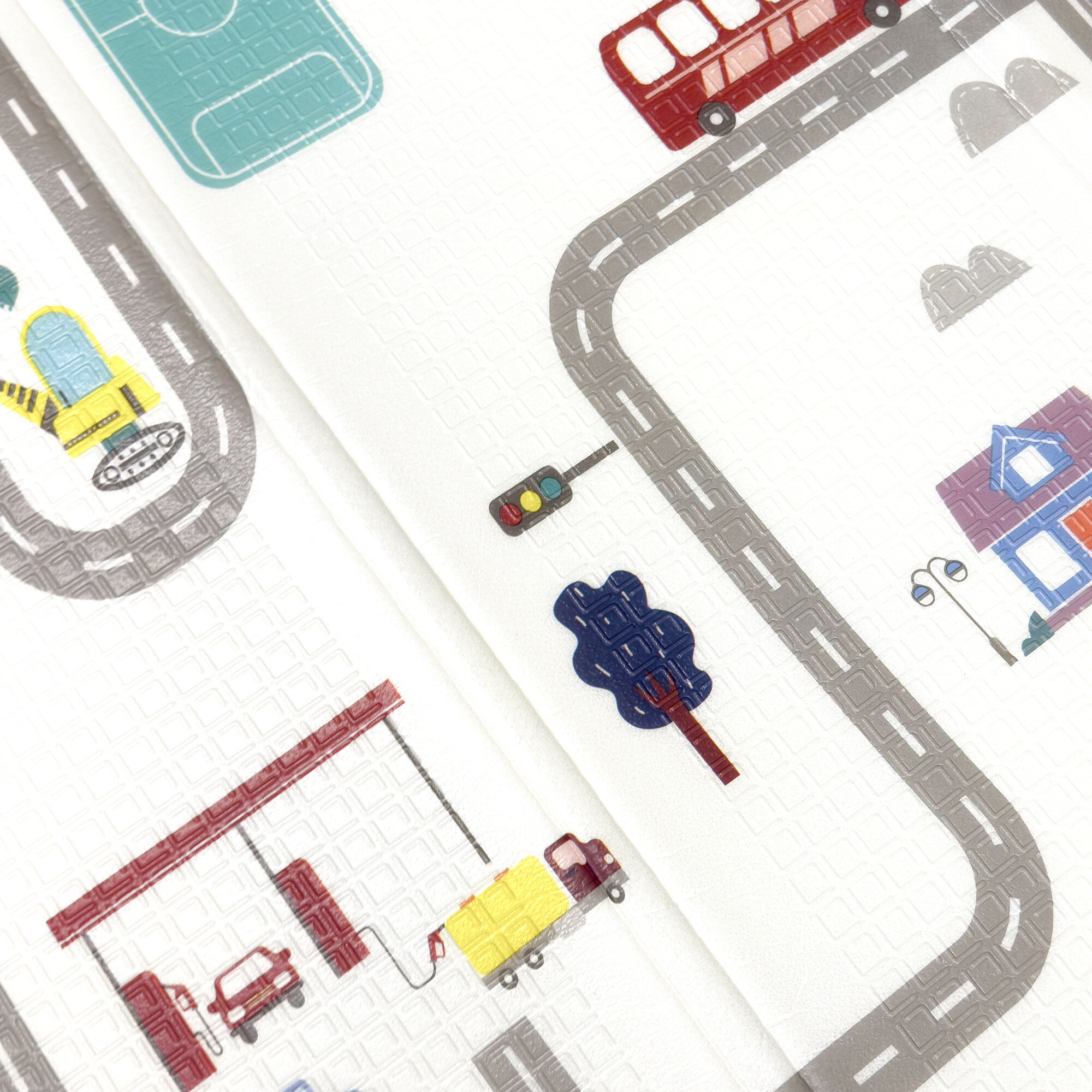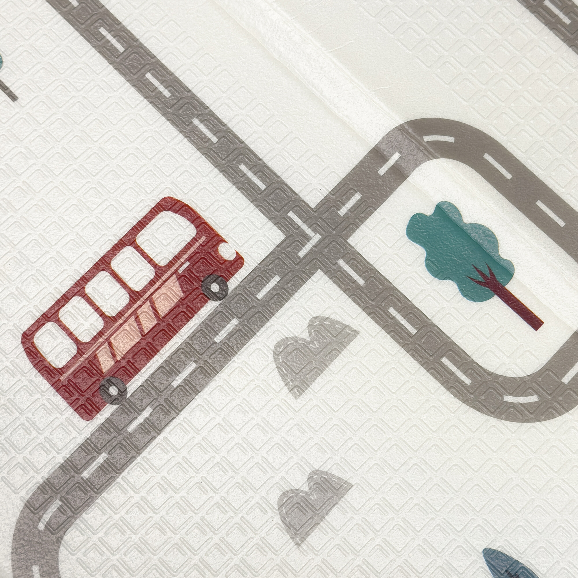 Die Spielmatte hat einen beidseitigen Druck mit fröhlichen Motiven und die rutschfeste Oberfläche sorgt für die Sicherheit bei jedem Spiel.