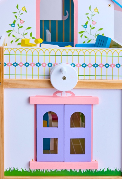 Neues Modell des Holzpuppenhauses NAOMI, entworfen für alle kleinen Prinzessinnen und ihre Freunde, von Aga4Kids.