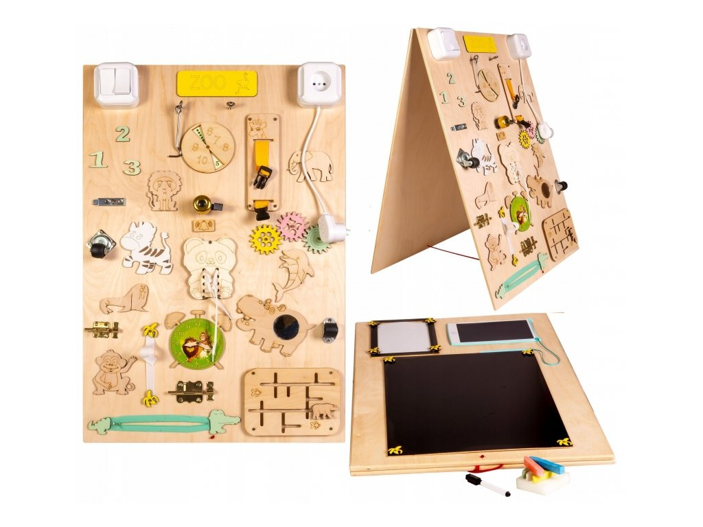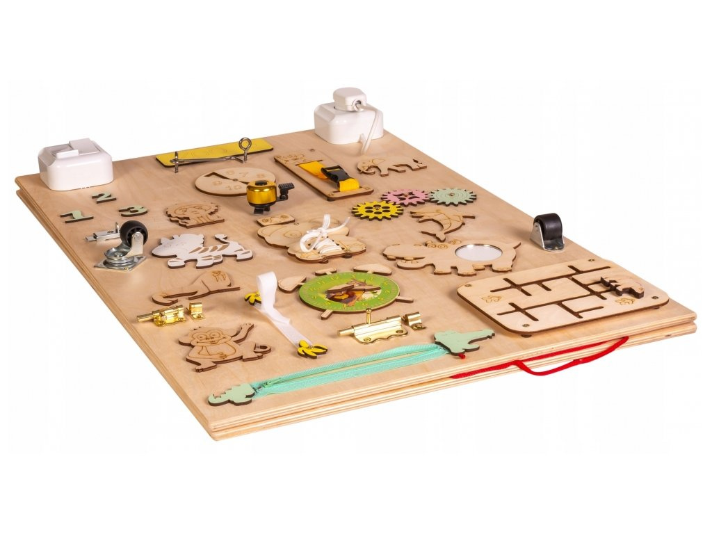 Die Bretter sind auf die Entwicklung der Feinmotorik ausgerichtet und fördern die Geduld und den Geschicklichkeitserwerb des Kindes.