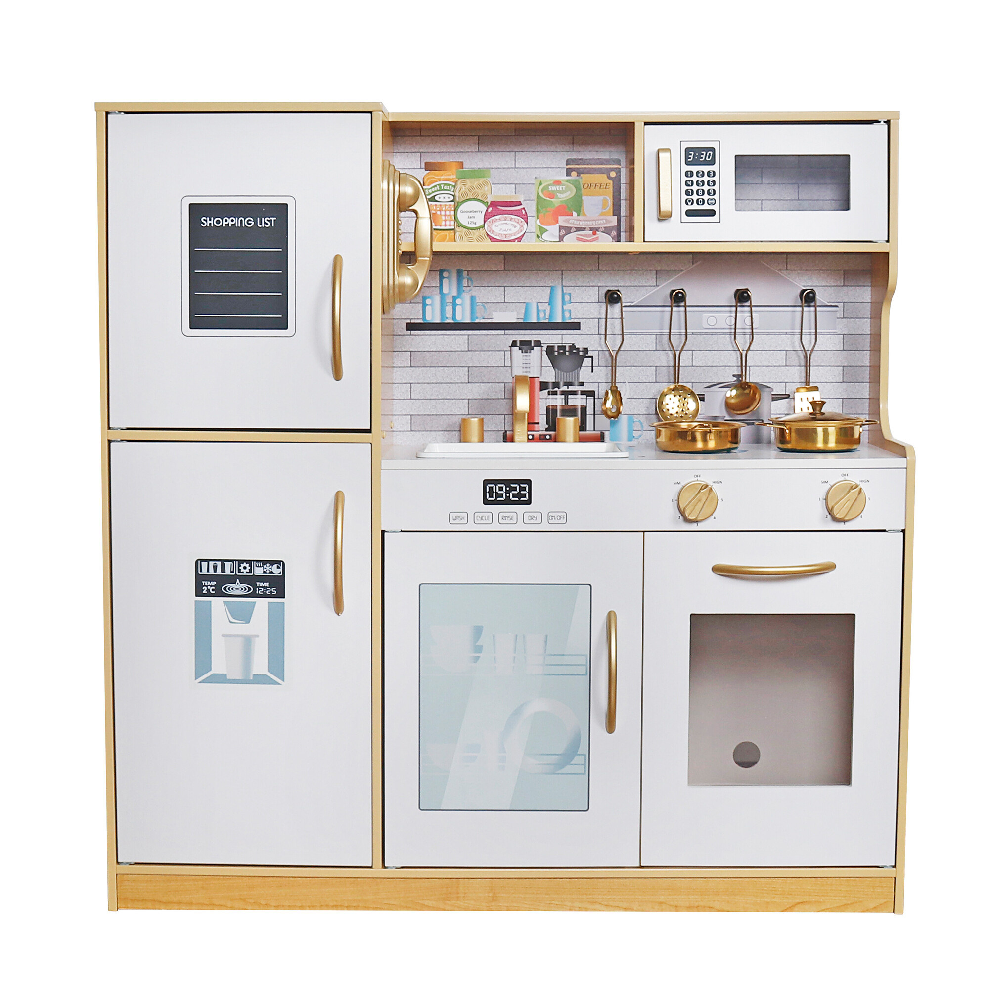 Dieses Modell der Kinderküche ist mit einer Vielzahl von funktionalen Elementen und Zubehör ausgestattet.
