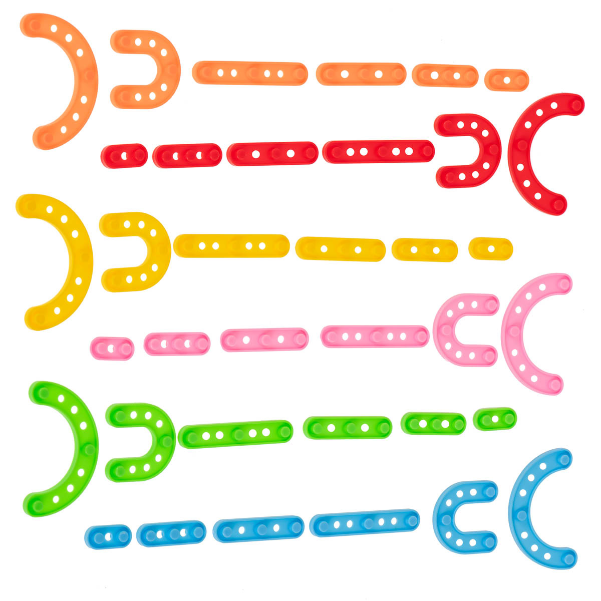 Die Blöcke sind nach dem Prinzip der Verriegelung miteinander verbunden.Das Set enthält 576 verschiedenfarbige Blöcke in unterschiedlichen Größen.