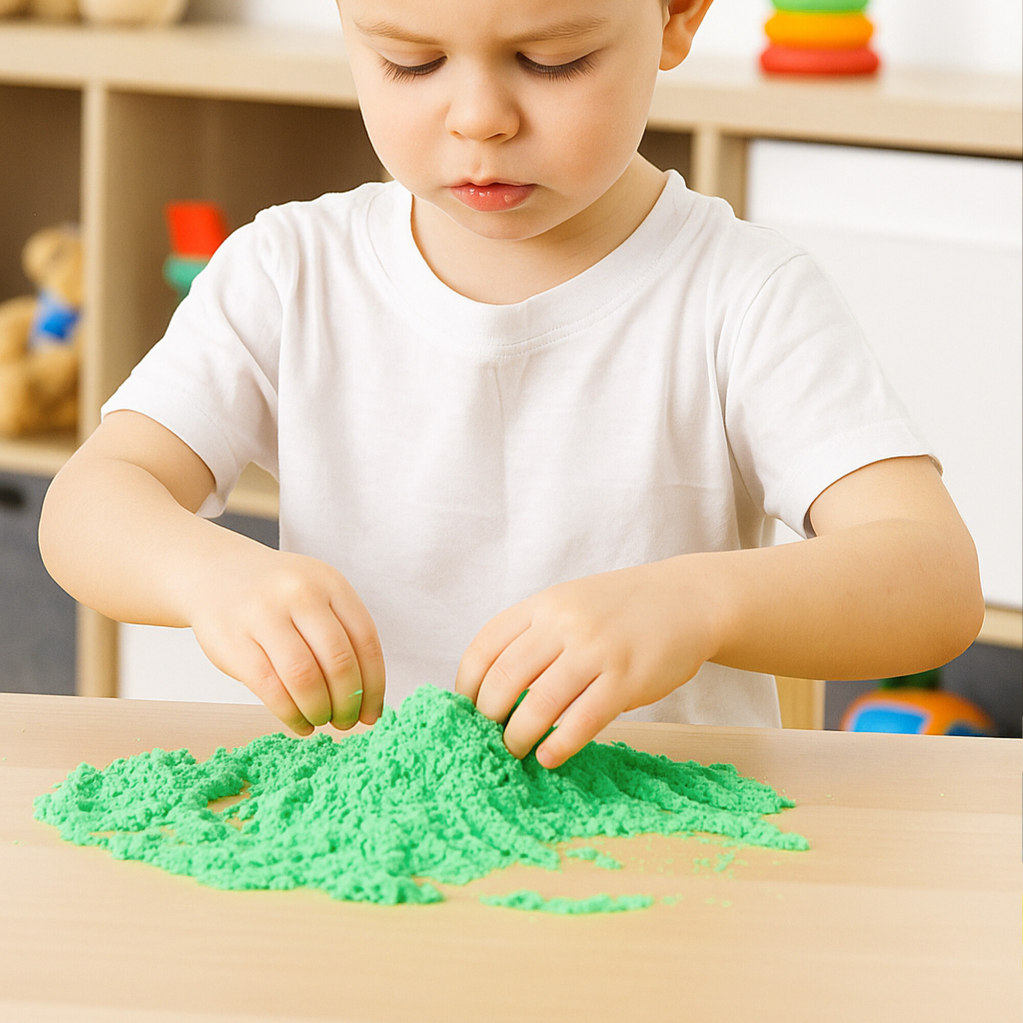- Das Spielen mit kinetischem Sand fördert bei Kindern die Feinmotorik, Kreativität, taktile Wahrnehmung und kreative Vorstellungskraft