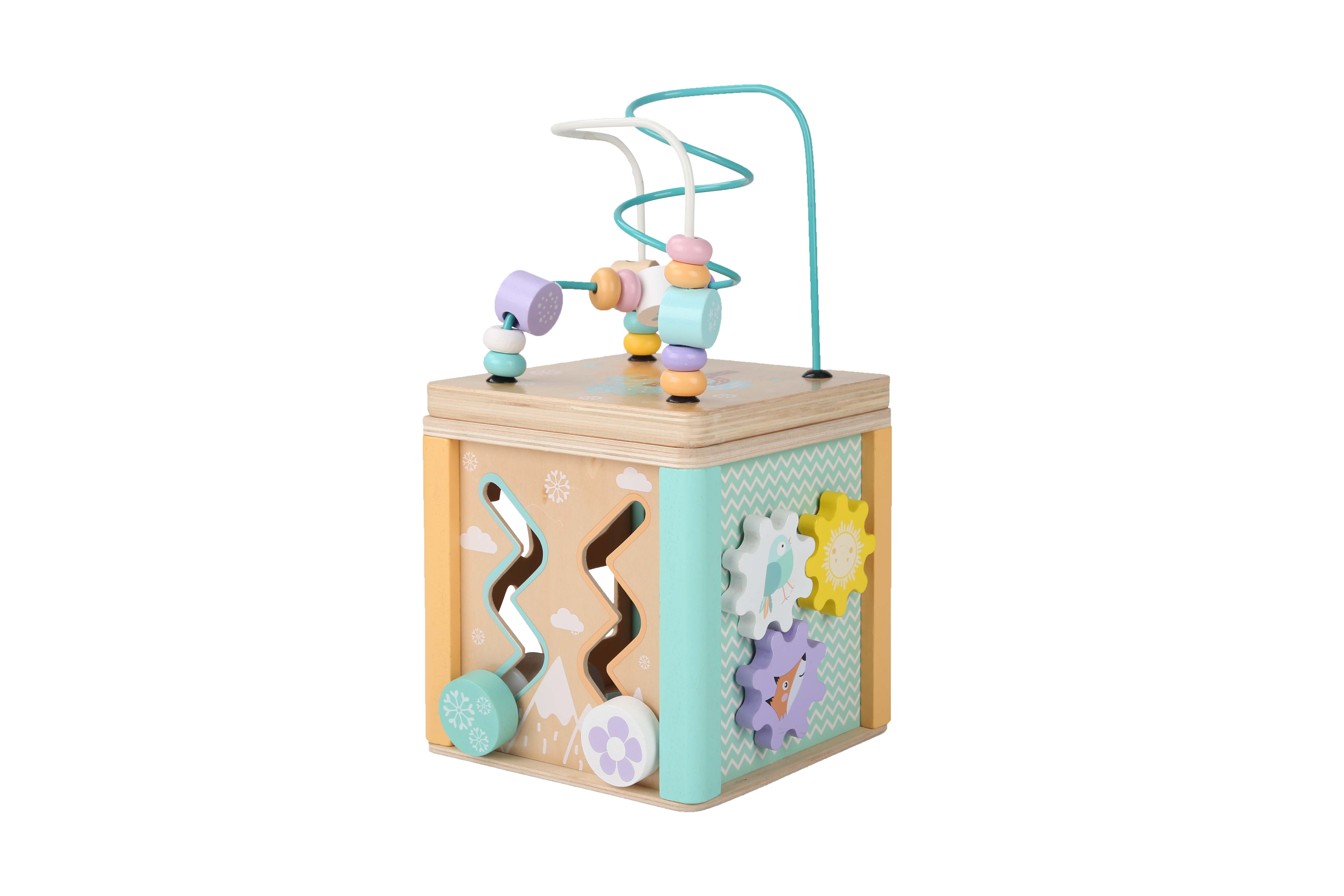 Dieser bunte interaktive Lernwürfel aus Holz ist ein hochwertiges Holzspielzeug für kleine Hände.