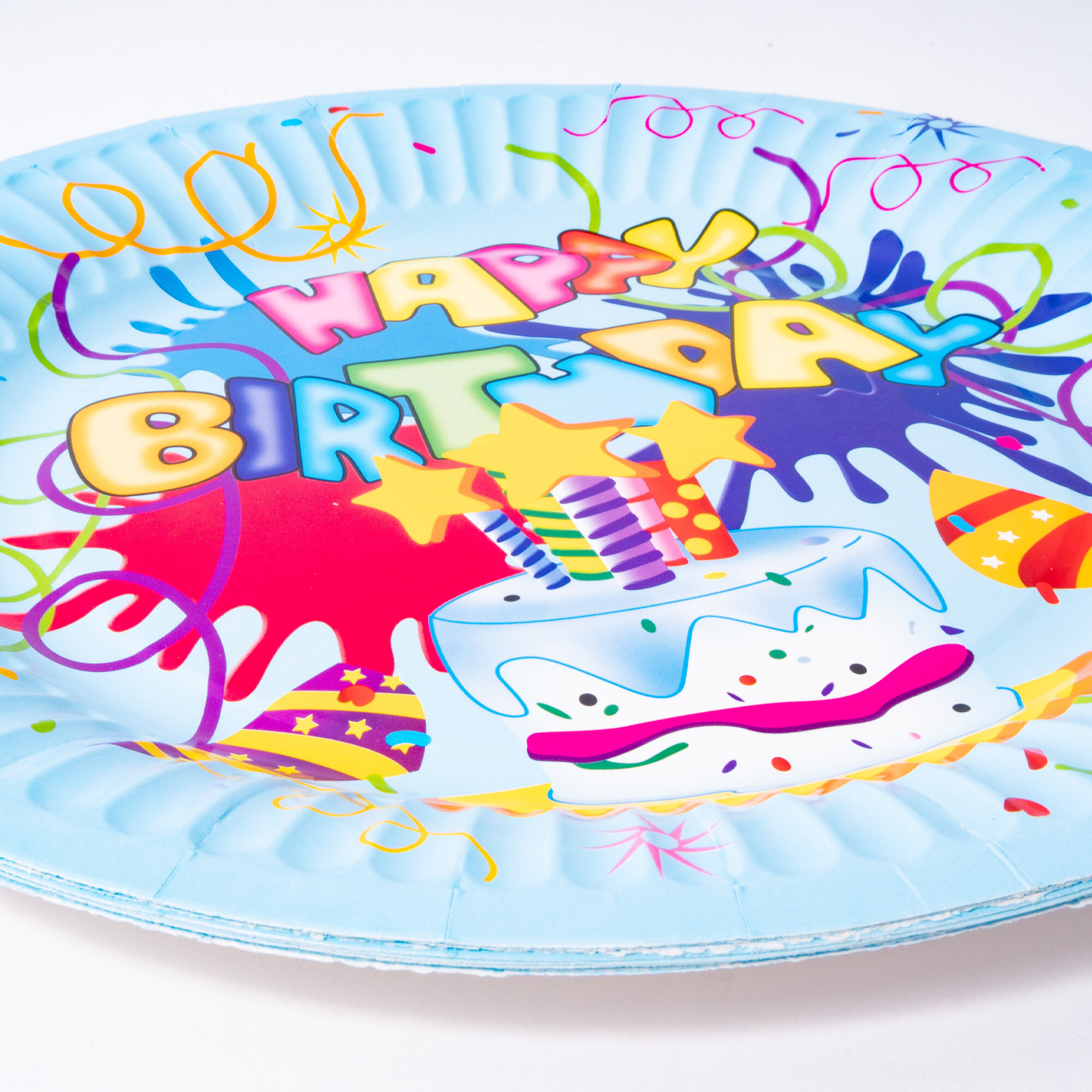 Jeder Teller ist mit fröhlichen und bunten Motiven verziert, die sofort Aufmerksamkeit erregen und Ihrer Feier den richtigen Pfiff verleihen.