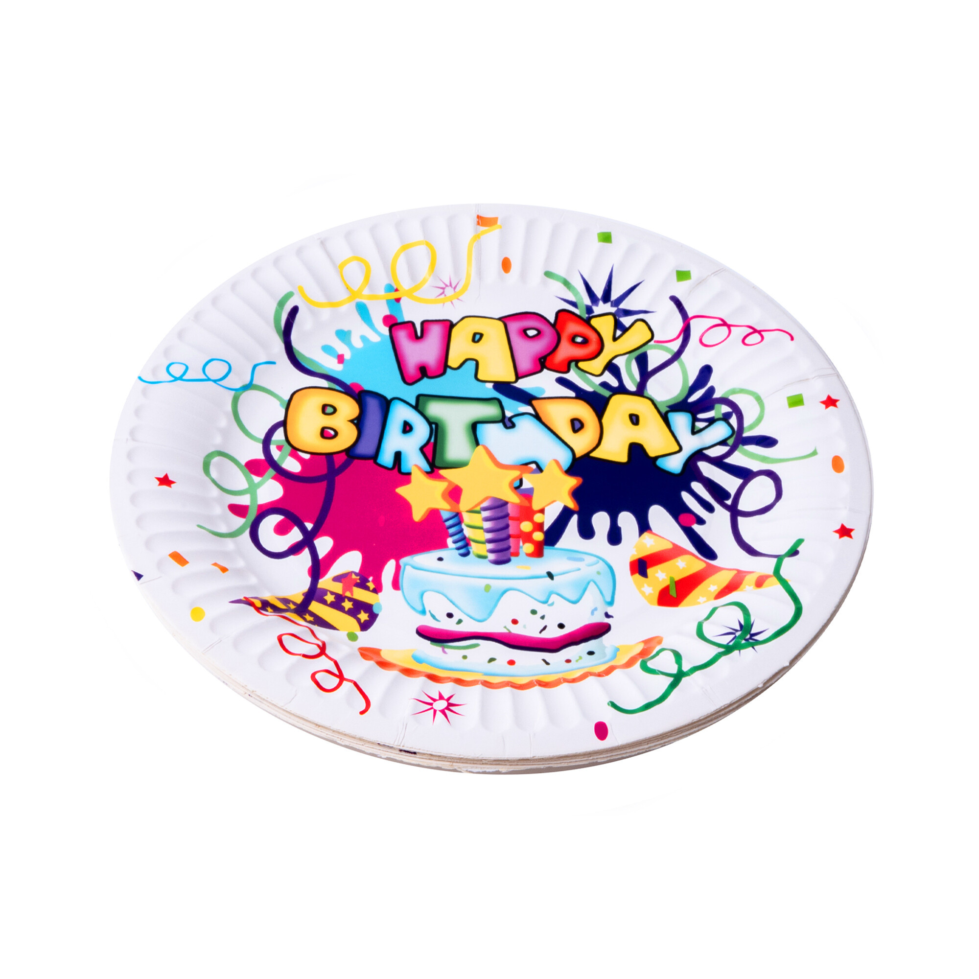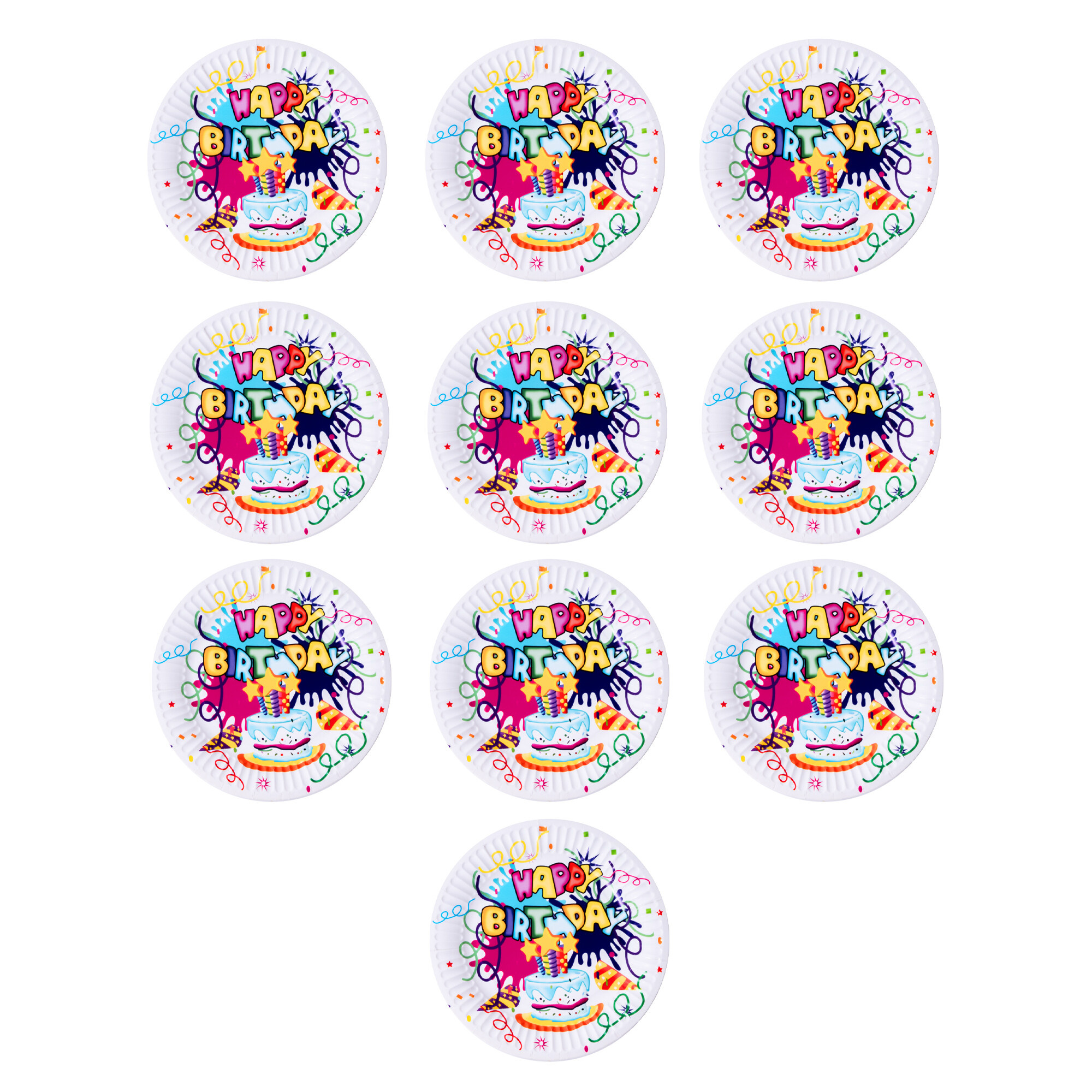 Jeder Teller ist mit fröhlichen und bunten Motiven verziert, die sofort Aufmerksamkeit erregen und Ihrer Feier den richtigen Pfiff verleihen.