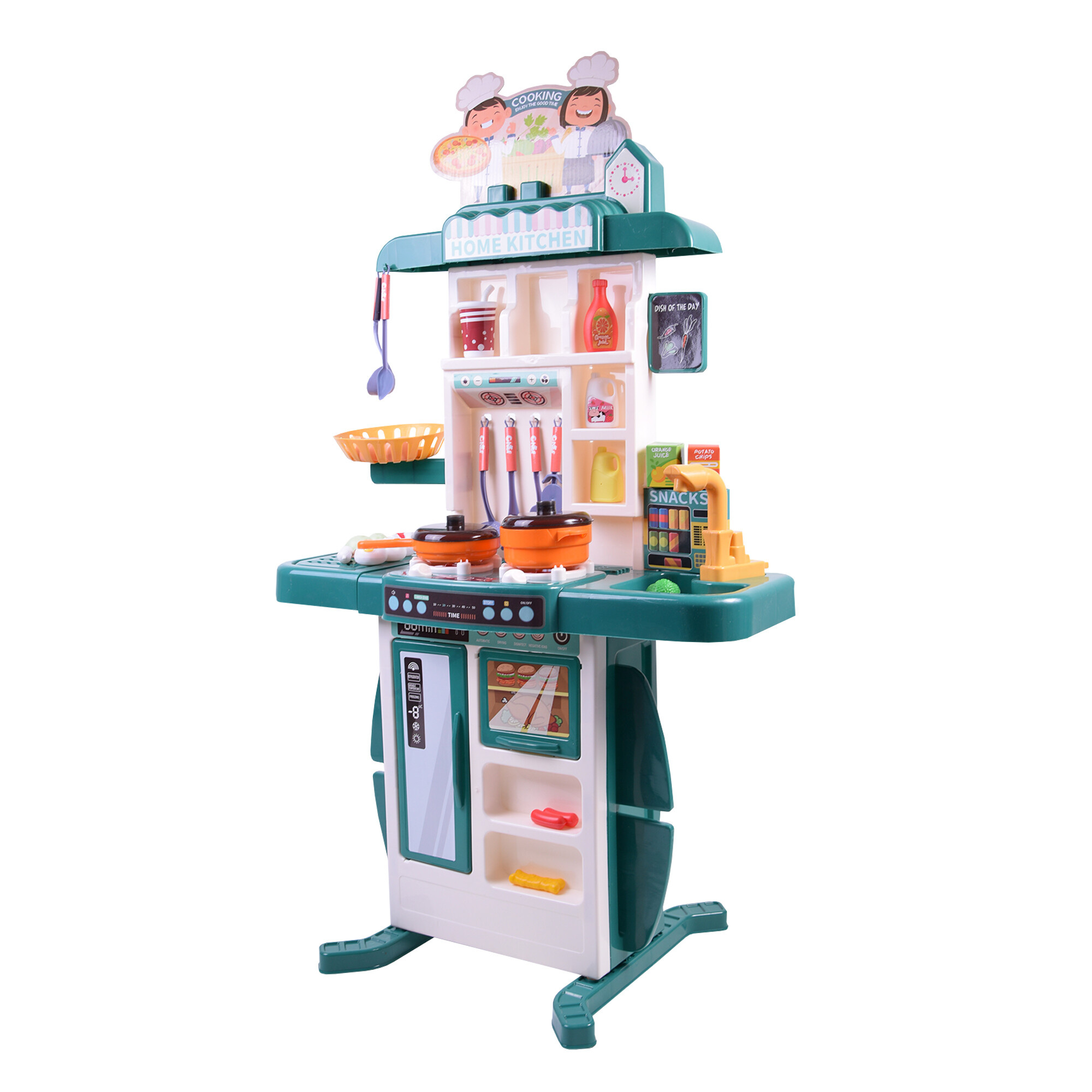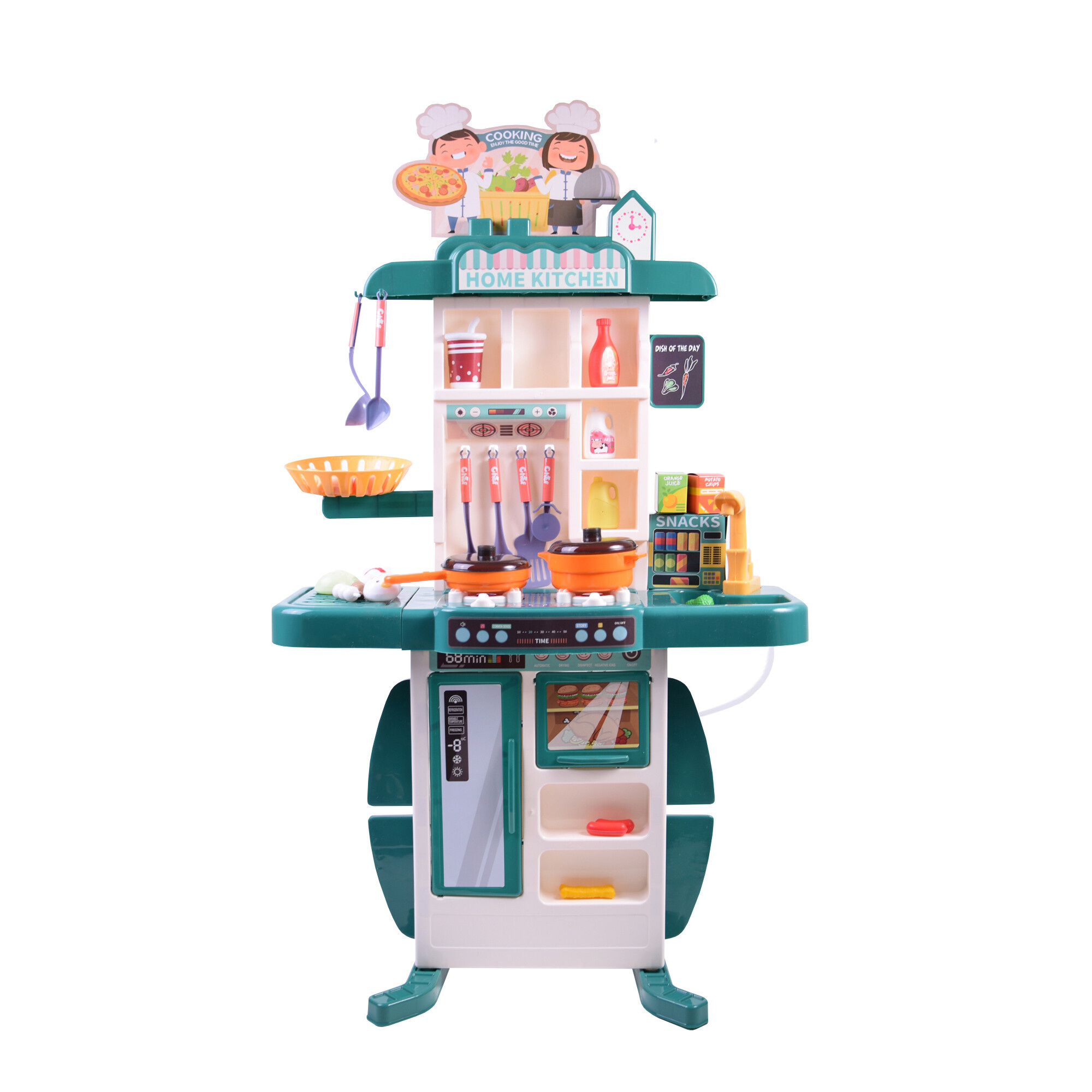 Der Herd ist mit einem Brenner ausgestattet, der nicht nur leuchtet, sondern auch realistische Kochgeräusche erzeugt. Darüber hinaus verfügt es über eine Funktion zur Abgabe von kaltem Dampf, was dem Spiel Authentizität verleiht. Ihre Kinder werden begeistert sein, wenn sie das Klicken der Knöpfe hören und sehen, wie ihre kleine Küche "zum Leben erwacht".Die kleine Küche ist mit einem Spülbecken und einer Wasserpumpe ausgestattet, was es den Kindern ermöglicht, das Abwaschen und andere Küchenaktivitäten nachzuahmen.