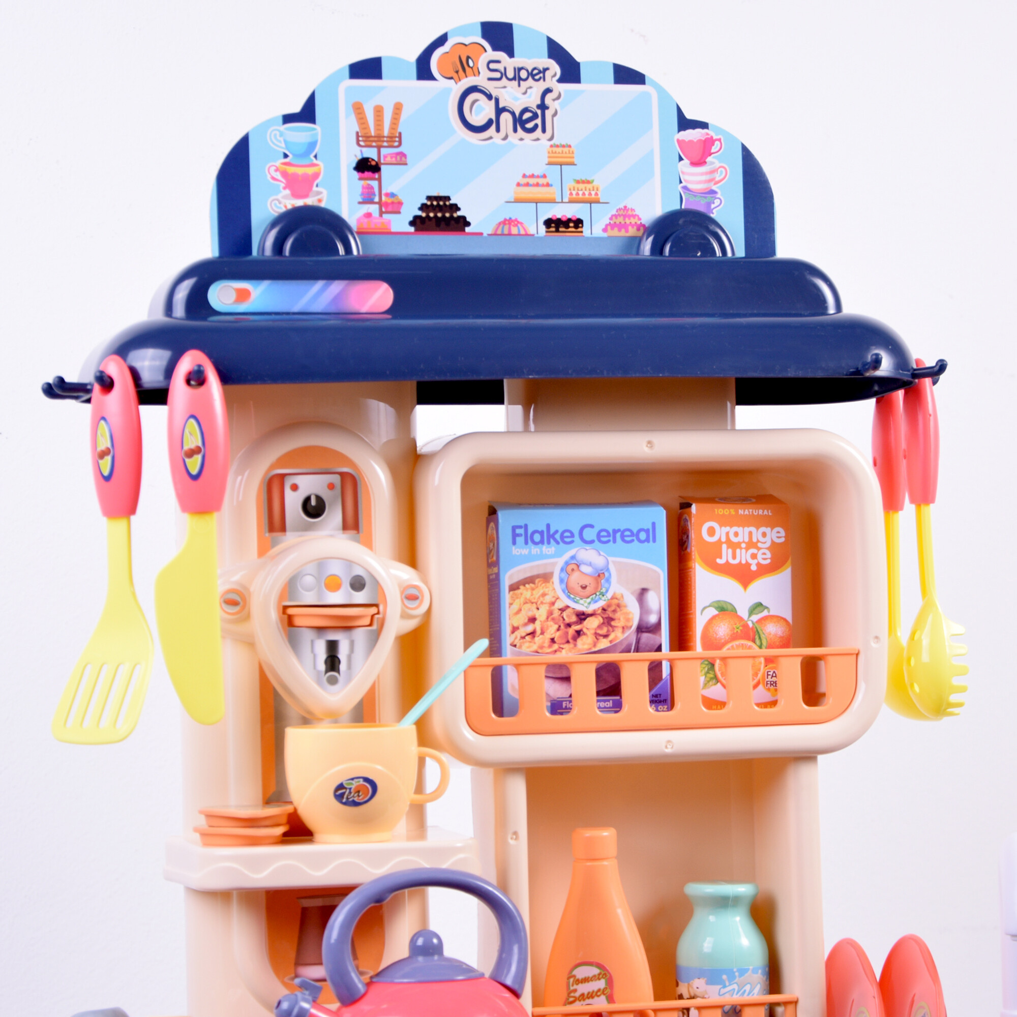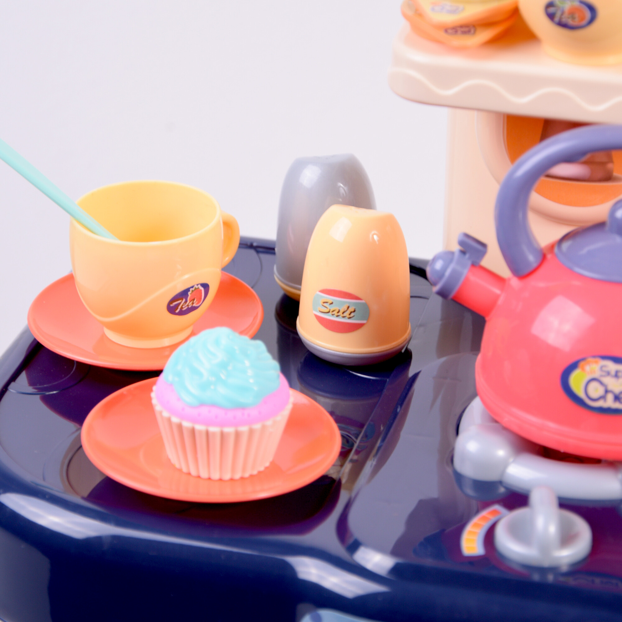 Die kleine Küche ist mit Ton- und Lichteffekten des Herdes ausgestattet, die dem Kochspiel eine realistische Note verleihen.