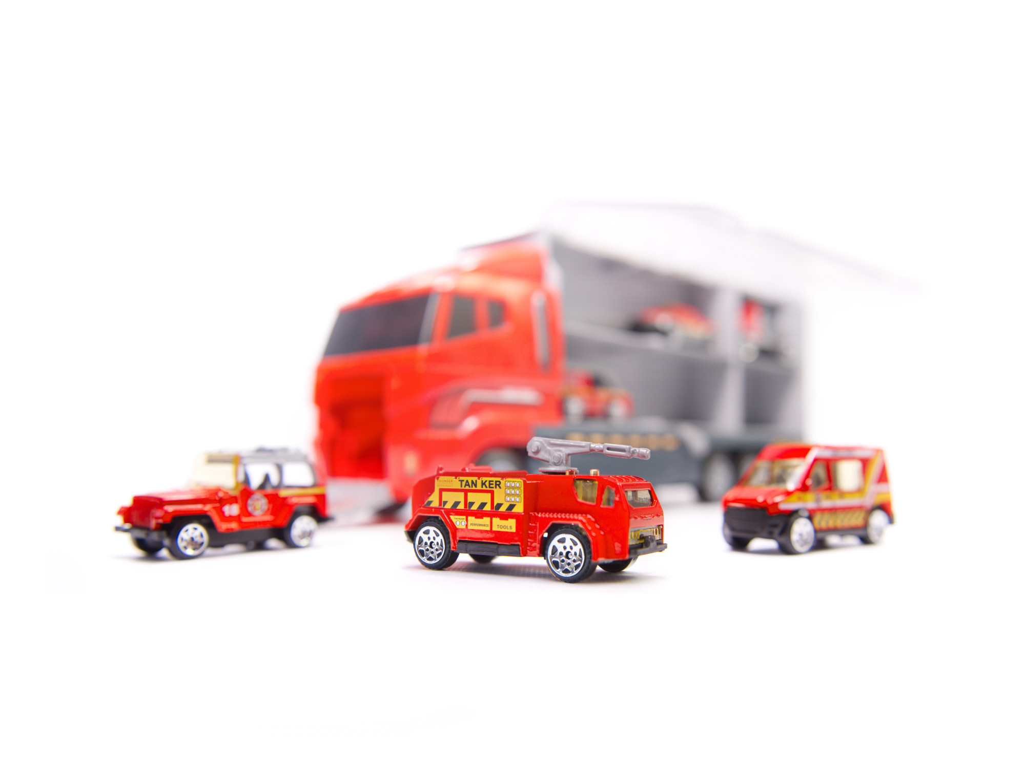 Mit diesem Transportfahrzeug können Sie Ihr Set von Feuerwehrautos mitnehmen!