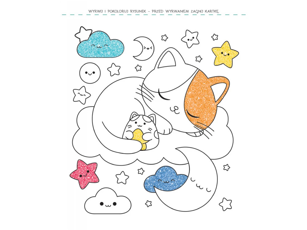 „Brokatowa kolorowanka. Pieski i kotki” to idealna propozycja dla małych miłośników zwierząt, którzy chcą rozwijać wyobraźnię, zdolności manualne i koncentrację podczas kreatywnej zabawy.