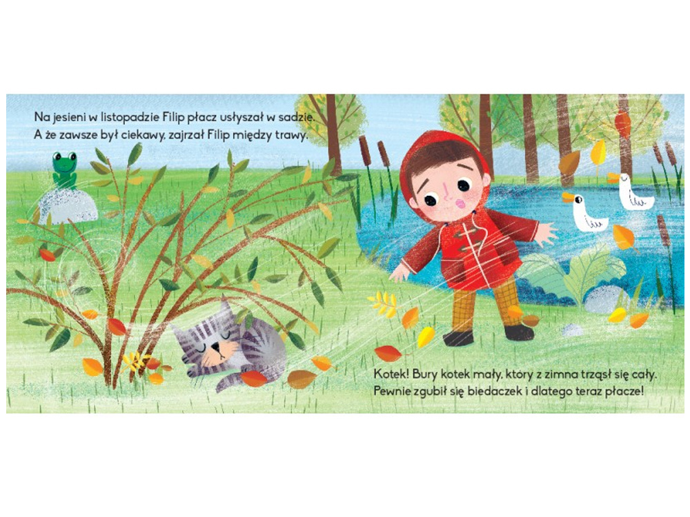 Rymowany tekst, barwne ilustracje i prosta fabuła zachęcają maluchy do poznawania świata zwierząt, rozwijają empatię, czułość i poczucie odpowiedzialności. To doskonała książka do wspólnego czytania z rodzicem – pełna ciepła, rytmu i uśmiechu.