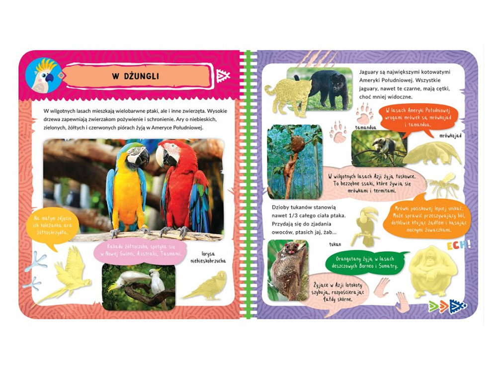 „Album z naklejkami. Egzotyczne zwierzęta. Ciekawostki dla dzieci” wyróżniają: