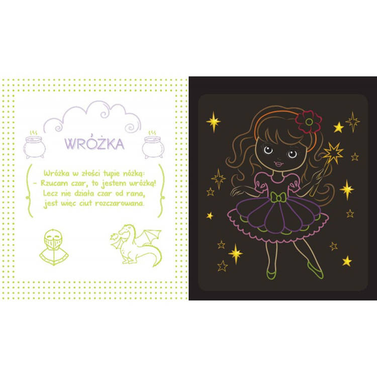 Użyj rysika jak magicznej różdżki, a na pokrytych czernią stronach wyczarujesz kolorowy świat zwierząt, pojazdów i bajkowych postaci.