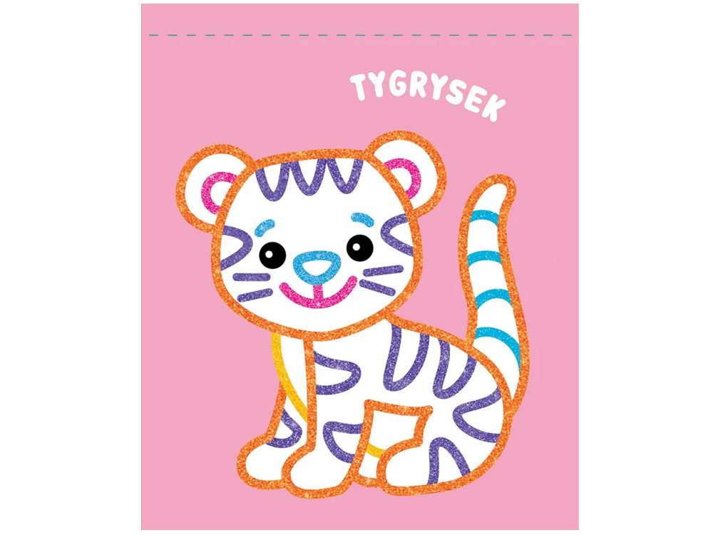 W tej wyjątkowej książeczce kontury obrazków pokryte są brokatem – są nie tylko błyszczące, ale i lekko wypukłe, dzięki czemu dziecko z łatwością koloruje bez wychodzenia poza linię. To doskonały sposób, by rozwijać precyzję, cierpliwość i małą motorykę, a przy tym cieszyć się z pięknych efektów własnej pracy.