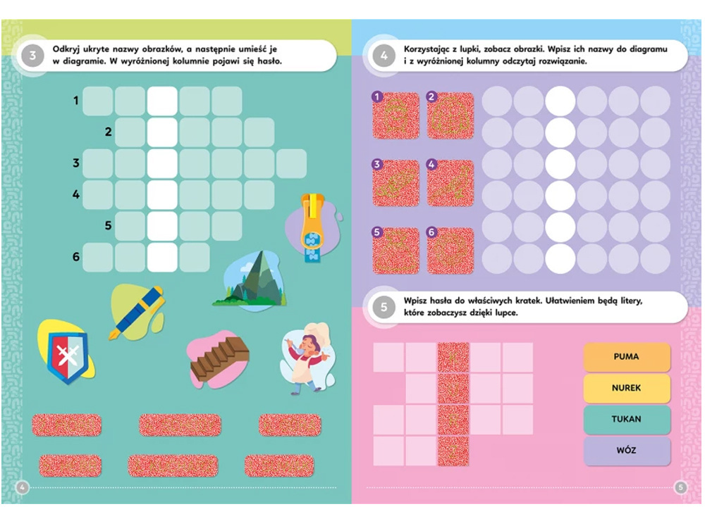 Krzyżówki ortograficzne z magiczną lupką (od 7 lat)