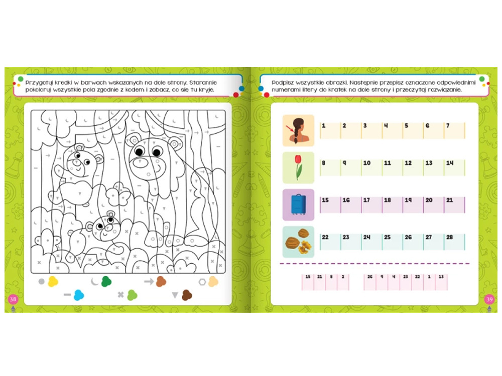 Rozwiązywanie łamigłówek to nie tylko świetna zabawa, ale też doskonały trening logicznego myślenia, spostrzegawczości i koncentracji. Kolorowa, atrakcyjna szata graficzna sprawia, że nauka zamienia się w przyjemność, a każde rozwiązane zadanie daje dziecku satysfakcję i poczucie sukcesu.