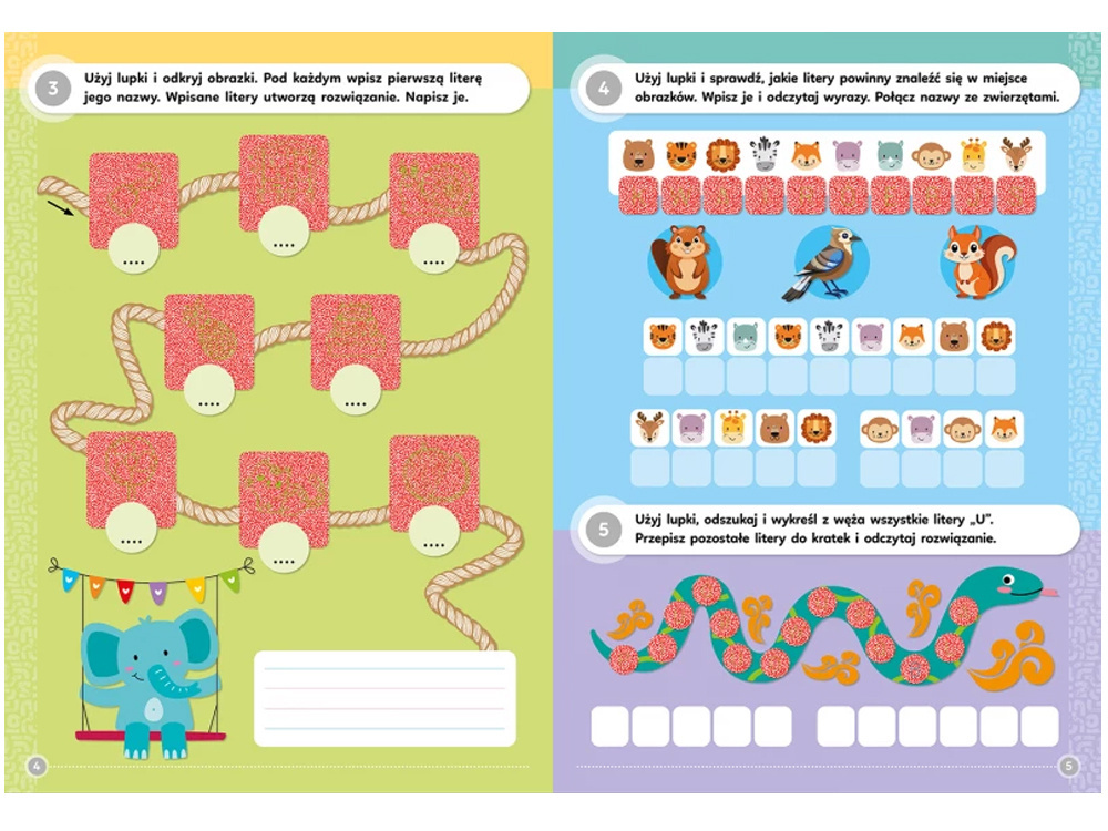 „Łamigłówki ortograficzne z magiczną lupką” to wyjątkowa książka, w której nauka pisowni zamienia się w fascynującą zabawę. Nie wszystko widać od razu – użyj dołączonej lupki, by odkryć ukryte litery, słowa i rysunki!