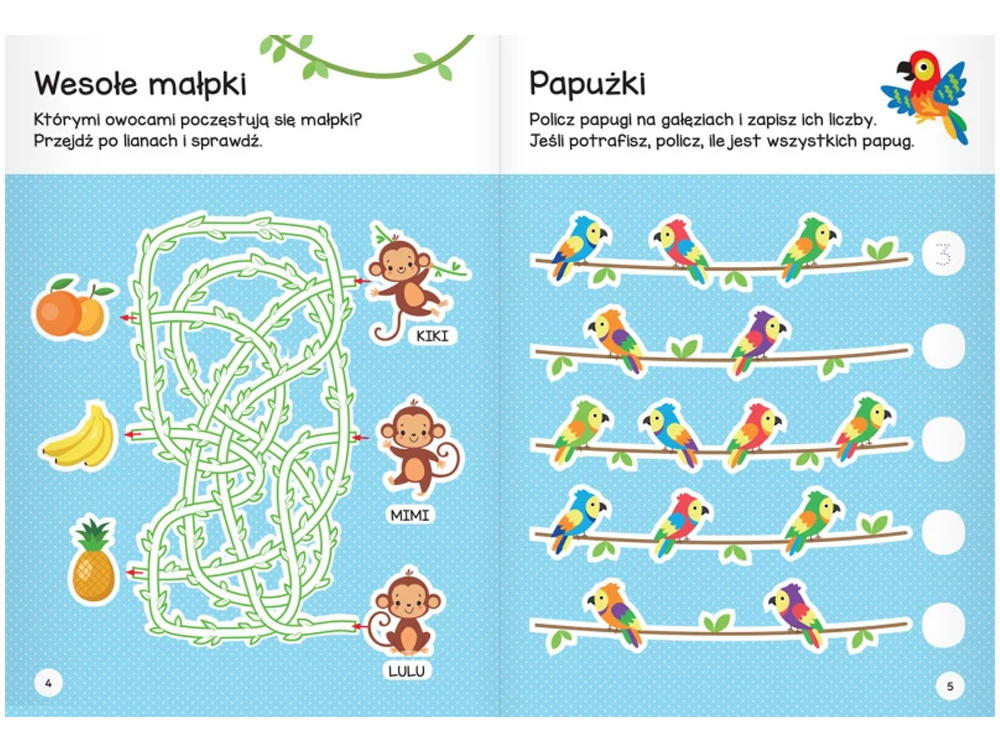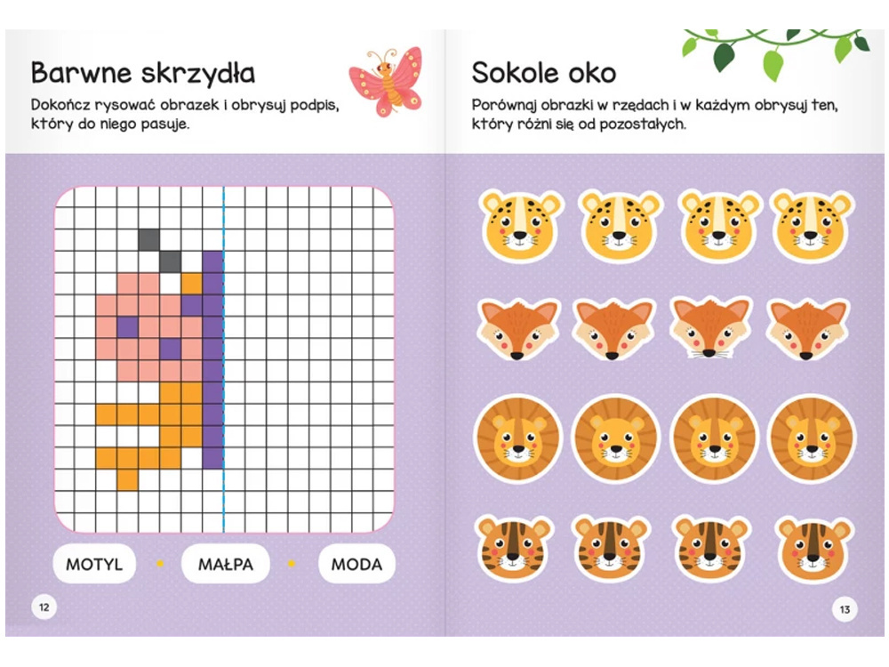 W środku czekają krzyżówki, labirynty, łączenie punktów, ukryte rysunki i wiele innych zadań, które łączą zabawę z nauką.