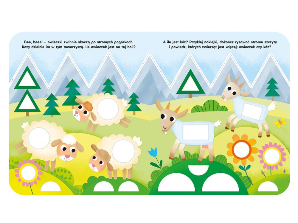 Uczy wyszukiwania figur i odnalezienia odpowiedniej naklejki, która będzie pasować do obrazka. Te proste figury geometryczne dzieci chętniej zapamiętają i utrwalą ich nazwy. Dołączone naklejki zachęcą dziecko to rysowania prostych kształtów oraz utrwalenia nazw kolorów. Takie zabawy rozwijają spostrzegawczość i sprawność manualną.