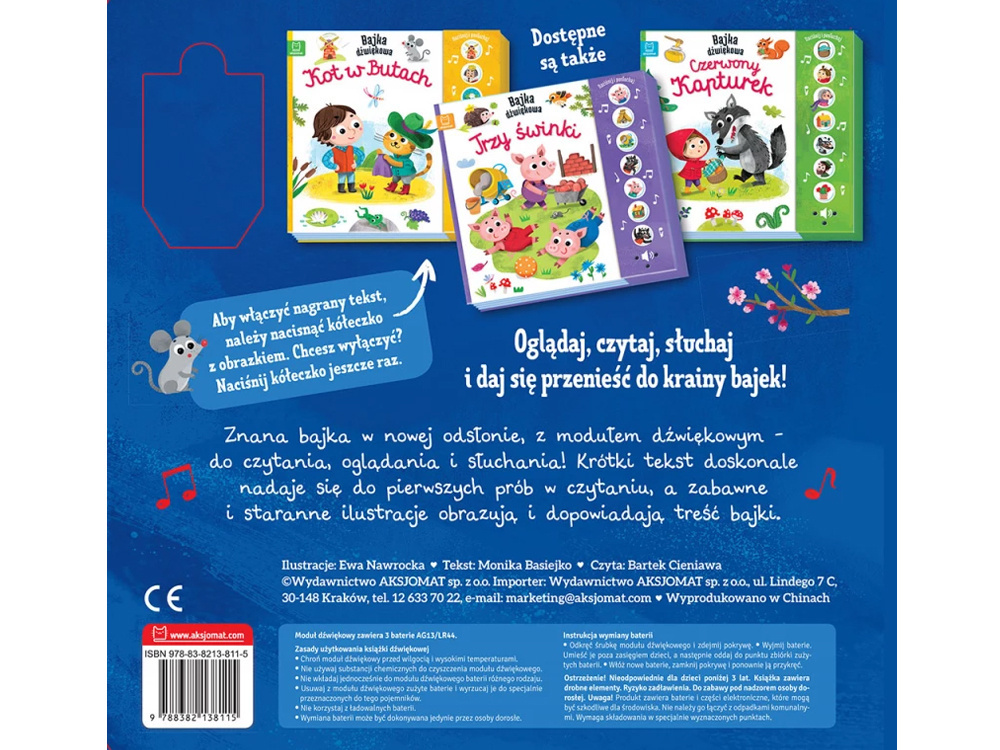 Poznaj klasyczną bajkę o Kopciuszku w nowoczesnej odsłonie z modułem dźwiękowym – czytaj, oglądaj i słuchaj w dowolnym momencie! Książka podzielona jest na siedem przejrzystych rozkładówek z krótkimi tekstami idealnymi do pierwszych prób czytania. Starannie wykonane, kolorowe ilustracje pomagają zrozumieć i poczuć magię opowieści.