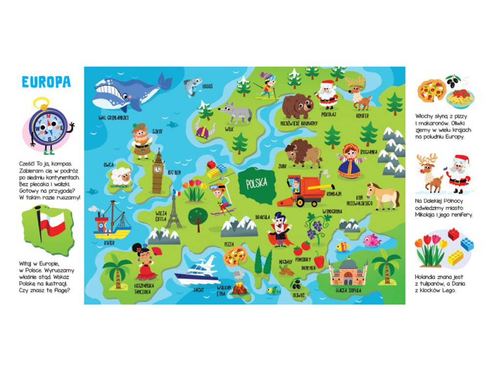 „Podróże malucha. Poznajemy kontynenty” to książeczka, która będzie doskonałą pomocą i inspiracją w pierwszych rozmowach z dzieckiem o świecie. Piękne ilustracje tego miniprzewodnika z pewnością pokażą maluchom jego różnorodność i bogactwo. Dzięki tej książeczce dziecko pozna nazwy kontynentów i ich mieszkańców, najbardziej charakterystyczne zwierzęta i rośliny, pojazdy, zabytki czy budynki wybranego lądu. Zabawa z tą książeczką to wspaniały pomysł na rozbudzenie w maluchu ciekawości światem.