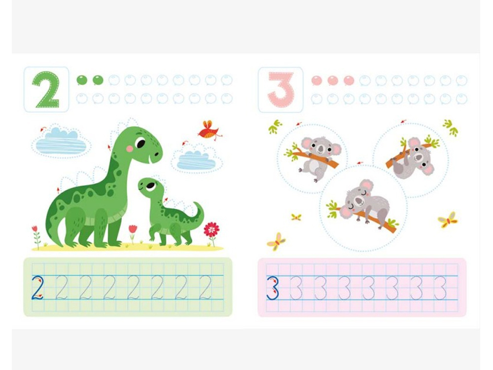 Książeczka dzięki której dzieci nauczą się cyferek . Dzięki temu, że książeczka jest wydrukowana na ścieralnym papierze, dziecko może pisać, mazać i znów pisać :) Książka ze ścieralnym pisakiem w niewymuszony sposób skłania dzieci do wielokrotnych powtórzeń, co sprawia, że bez wysiłku uczą się pisać i rozwijają sprawność manualną.