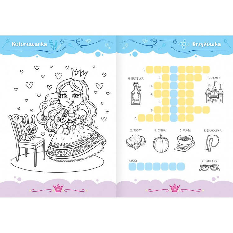 „Słodkie księżniczki. Aktywizująca książeczka dla dziewczynek” to zbiór zajmujących łamigłówek oraz kolorowanek do ciekawego spędzania czasu i rozwijania wielu przydatnych umiejętności.