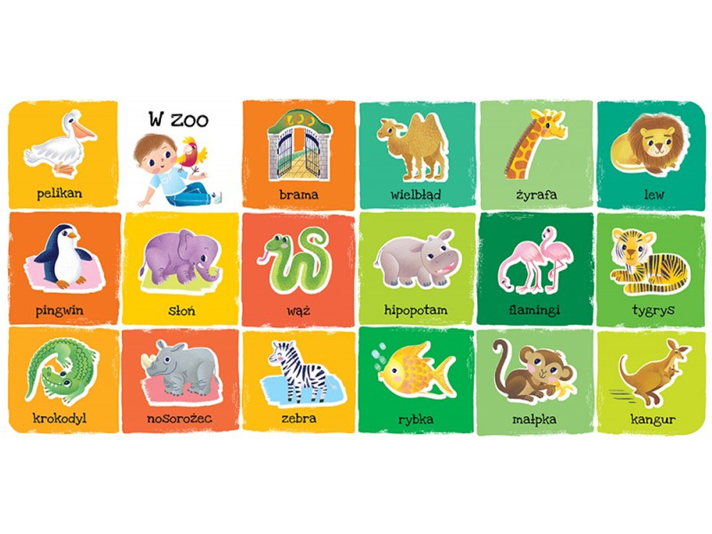Słowniczek zawiera ilustracje bliskie codziennemu życiu dziecka – od zabawek, przez ubrania, po zwierzątka czy jedzenie. Maluch z radością rozpozna to, co już zna, i z ciekawością nauczy się nowych słów.