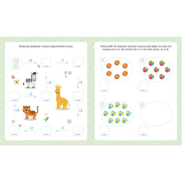"Wesołą matematykę dla smyka” polecamy do nauki pisania liczb oraz pierwszych ćwiczeń w liczeniu.
