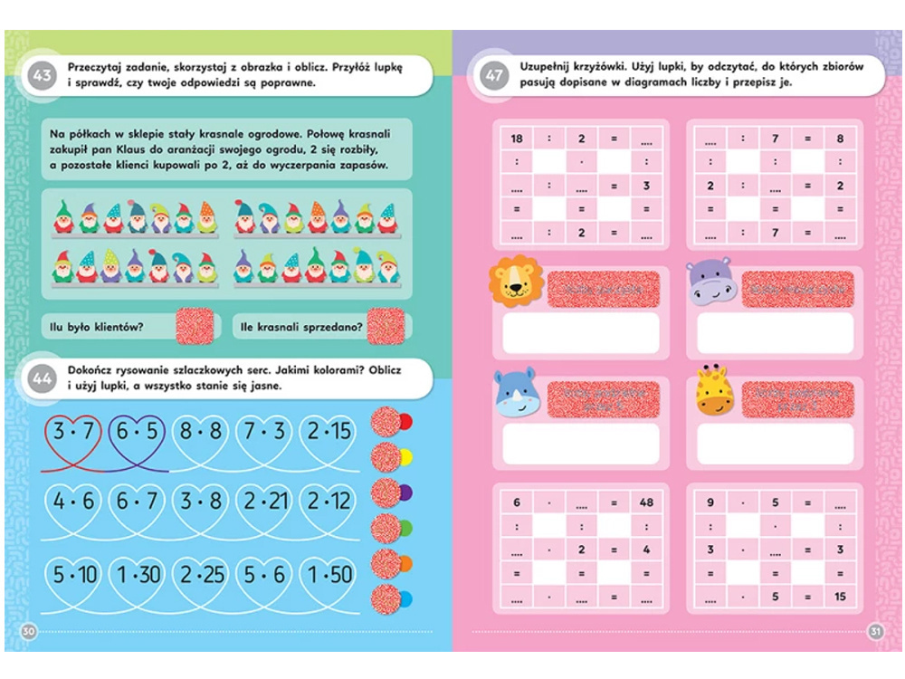 Ta niezwykła książeczka łączy naukę z zabawą dzięki magicznej lupce, która pozwala sprawdzać odpowiedzi i odkrywać ukryte elementy.