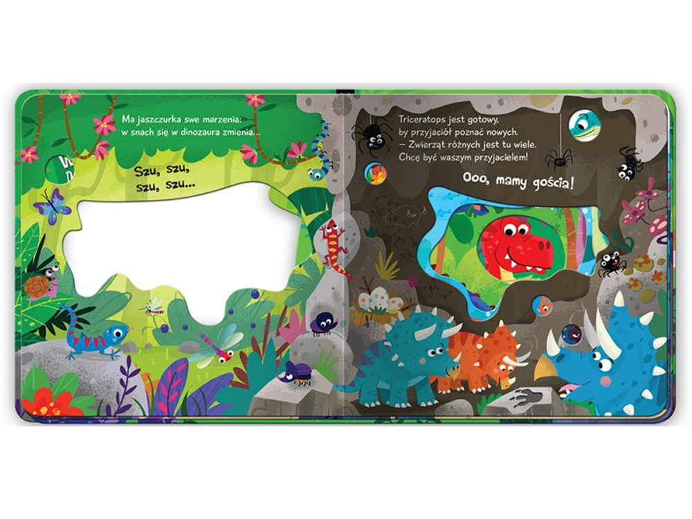 Wyrusz w niezwykłą podróż do czasów prehistorycznych i poznaj fascynujący świat dinozaurów! Ta przestrzenna książeczka została stworzona z myślą o małych miłośnikach zwierząt – pełna kolorowych ilustracji, okienek i zabawnych niespodzianek, które pobudzają ciekawość i wyobraźnię.