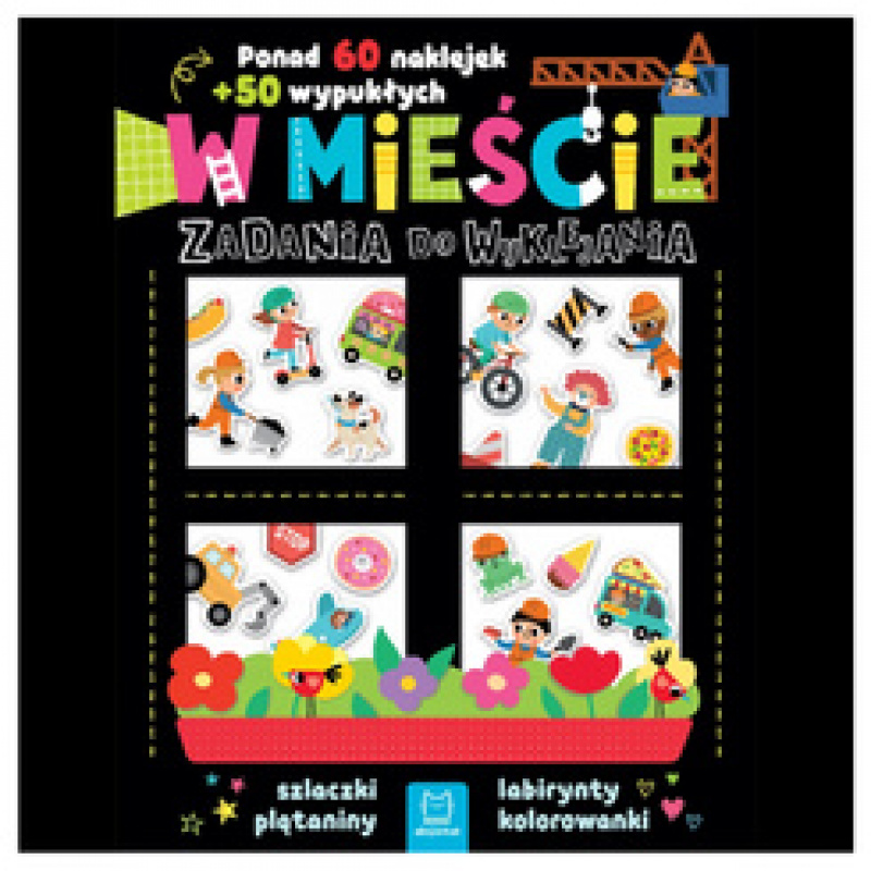 „W mieście. Zadania do wyklejania” to pełna zabawy książeczka aktywizująca dla dzieci w wieku 4–6 lat. Znajdziesz w niej ponad 60 klasycznych naklejek oraz 50 wypukłych naklejek, które można wykorzystać do ozdabiania książki lub innych przedmiotów.