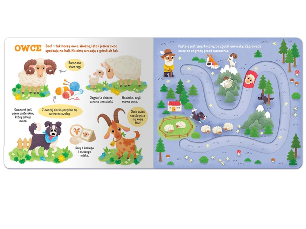 „Zwierzątka na wsi. Labirynty z ruchomymi elementami” to wyjątkowa książeczka stworzona z myślą o najmłodszych odkrywcach. Dzięki niej maluchy poznają zwierzątka mieszkające na wsi – dowiedzą się, jak wyglądają, co je wyróżnia i jakie dźwięki wydają.