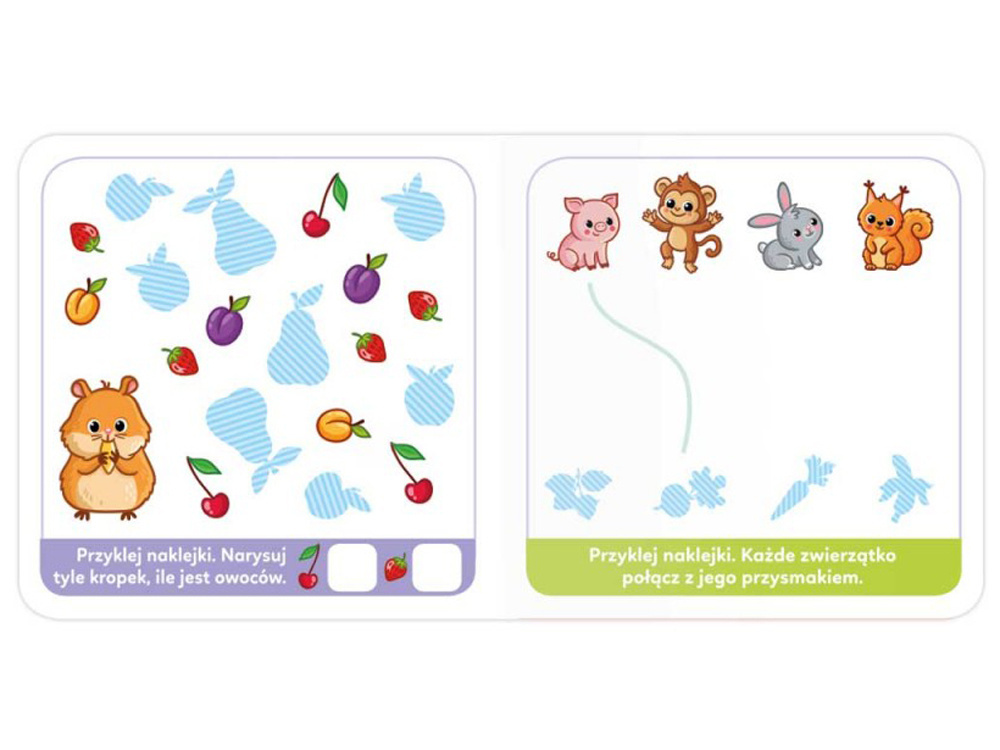 - książeczki z naklejkami, pełnej zadań i łamigłówek dla maluchów.