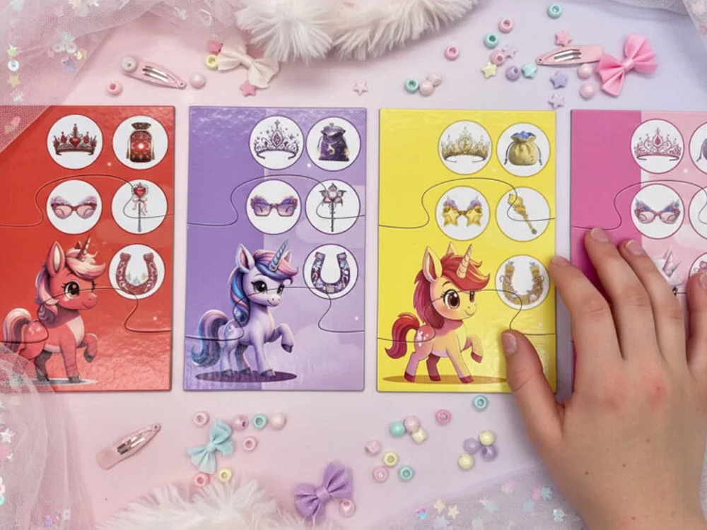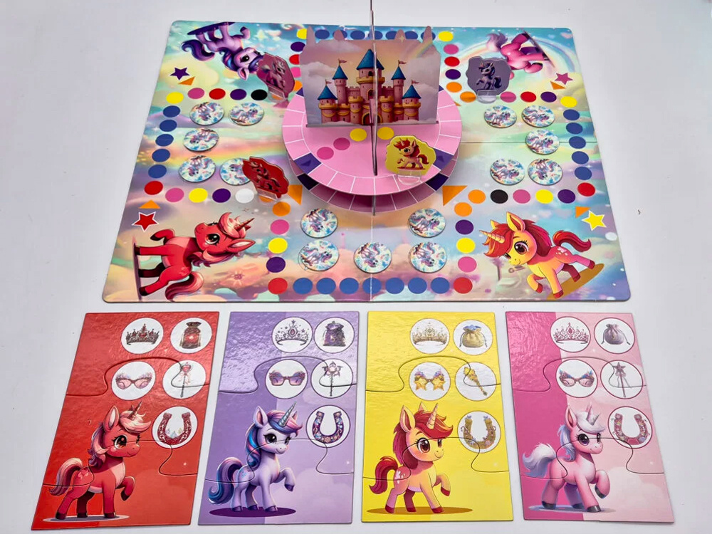Podczas rozgrywki mali odkrywcy ćwiczą pamięć, spostrzegawczość i logiczne myślenie, zapamiętując położenie żetonów i planując swoje ruchy. Każdy rzut kostką to krok w stronę zamku i nowa szansa na odkrycie ukrytych przedmiotów. Emocje narastają z każdą turą, a radość osiąga szczyt, gdy pierwszy jednorożec z kompletem pięciu czarodziejskich przedmiotów dotrze do bram magicznego zamku.