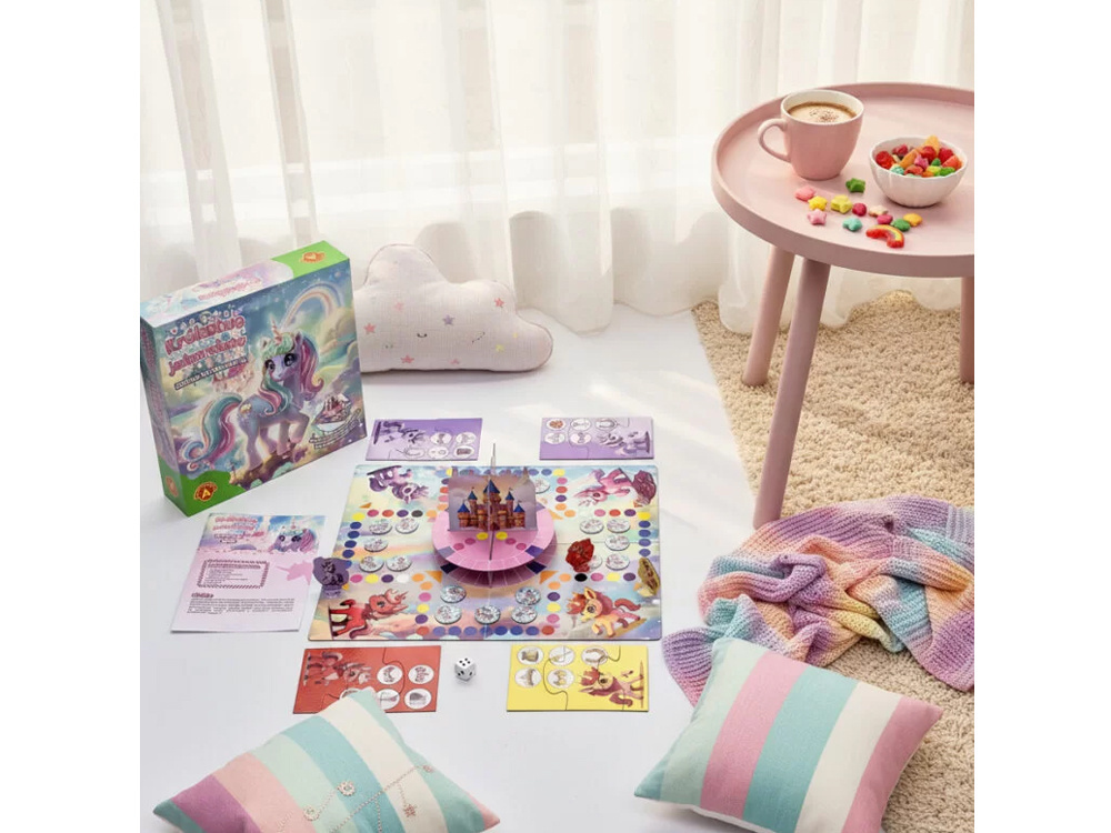 Gra rozwija pamięć i koncentrację – dzieci uczą się zapamiętywać położenie żetonów oraz obserwować ruchy innych graczy. Uczy sprytu, planowania i podejmowania decyzji – zwycięża ten, kto potrafi najlepiej wykorzystać swoje ruchy i okazje do zdobycia potrzebnych przedmiotów. To także świetna zabawa pełna emocji i niespodzianek – każda tura przynosi coś nowego. Dodatkowo piękne wykonanie gry – kolorowa plansza, przestrzenny zamek 3D i urocze figurki jednorożców – sprawiają, że rozgrywka zachwyci każde dziecko i dorosłego.