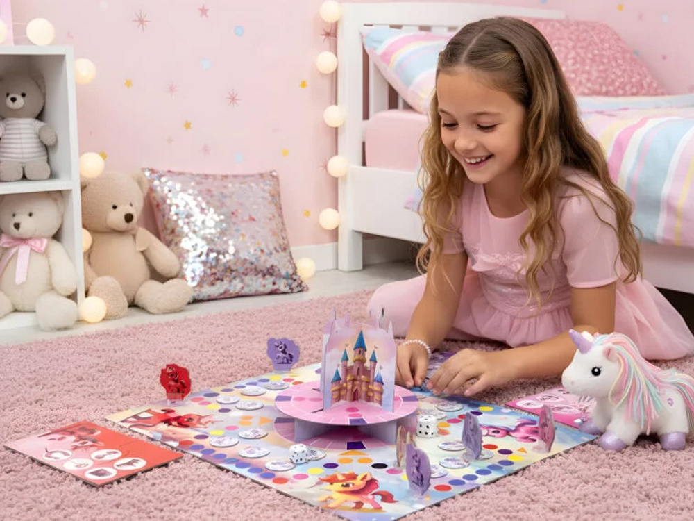 „Królestwo Jednorożców” to wspaniała propozycja dla dzieci, które uwielbiają bajkowe światy, jednorożce i magiczne przygody. Doskonale sprawdzi się podczas rodzinnych wieczorów i wspólnych zabaw z przyjaciółmi, ucząc, bawiąc i rozwijając dziecięcą wyobraźnię.