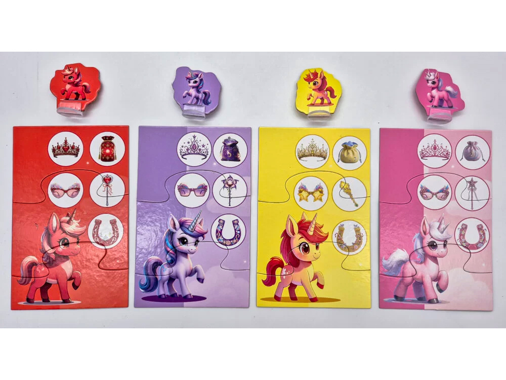 Każdy gracz wybiera planszetkę i pionek jednorożca, który stanie się jego postacią w grze.