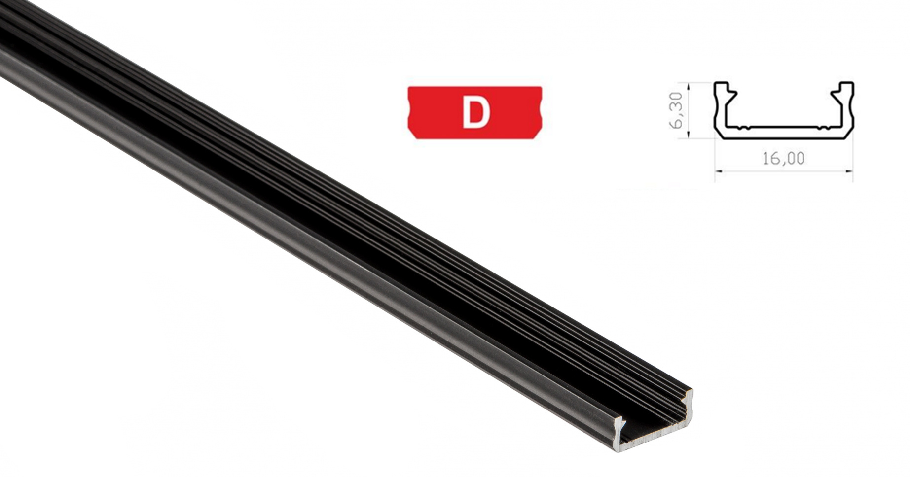 Aluminiumprofil für LED-Streifen D mini surface 1m BLACK