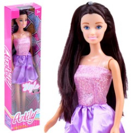 Die Puppe hat langes dunkles Haar, das zu einem Pferdeschwanz oder Dutt gebunden oder offen getragen werden kann. Das Kleid ist eine Kombination aus einem rosafarbenen Brokatmieder und einem violetten Taftrock, mit eleganten rosafarbenen Stöckelschuhen an den Füßen. Die Puppe hat bewegliche Gliedmaßen und ist aus Kunststoff mit einem Gesicht aus Gummi.