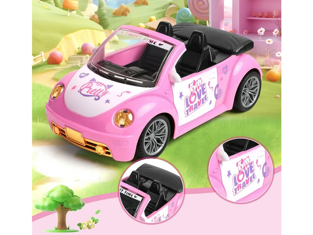 Śliczny różowy cabrio zapewni mnóstwo radości i stanie się niezastąpionym środkiem transportu dla małych zabawek Twojej pociechy. Idealny pomysł na prezent!