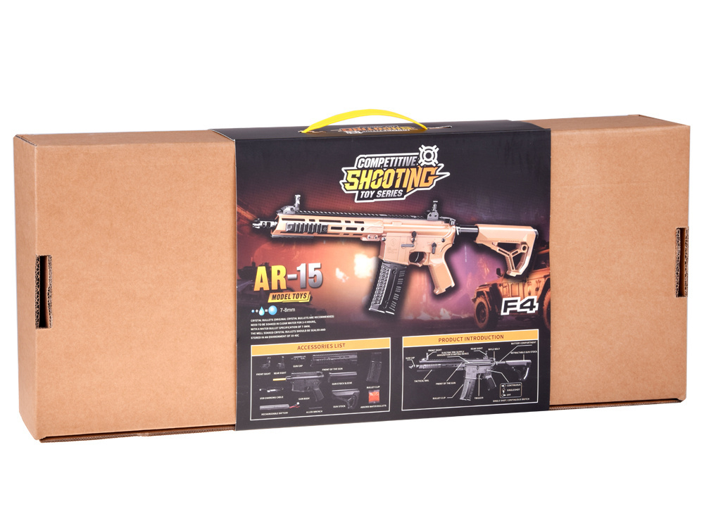 Przenieś zabawę na wyższy poziom z karabinem F4 – realistycznym, elektrycznym karabinem na kulki żelowe. Idealny dla małych i dużych miłośników strzelanek, gier wojskowych i zabaw w policjantów lub żołnierzy.