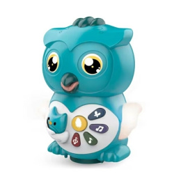 Sowa z funkcją dźwięku i światła to propozycja dla dzieci od 18-go miesiąca życia. Zabawka posiada obrotową stopkę na spodzie, dzięki której jeździ i odbija się od przeszkód. Oczka, pyszczek i skrzydełka sówki są ruchome. Dodatkowo skrzydełka są również podświetlane (mrugające czerwone światełko). Na brzuszku sówki umiejscowiono panel multifunkcyjny z odgłosami bicia serca, odgłosami dżungli, odgłosami zwierzątek oraz różnymi melodyjkami. Interaktywna sówka stymuluje rozwój wzroku, słuchu, mowy, inteligencje emocjonalną i wrażliwość dziecka. FUNKCJE: - sowa przemieszcza się na obrotowym kółku (przycisk na górze sowy), - trzepocze skrzydełkami, - oczy ruszają się w górę i w dół, - poruszają się usta, - odgłos bicia serca (przycisk z piórkiem), - trzy odgłosy zwierząt (przycisk z melodyjką), - odgłos dżungli (przycisk z motylkiem), - cztery podkłady muzyczne (przycisk z podwójną nutką), - dziesięć różnych odgłosów (przycisk z nutką), - podświetlane skrzydełka sówki, po naciśnięciu na jakikolwiek przycisk Zasilanie bateryjne: 3x AA Wymiary sowy: 16x13,5x12 cm Wymiary opakowania: 17,5x14,7x20,6 cm Zabawka dla dzieci powyżej 1,5 roku