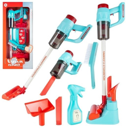 Zestaw do sprzątania to marzenie każdej małej Pani domu! Dzieci uwielbiają naśladować swoich rodziców. Zabawka uczy odpowiedzialności i rozwija świadomość obowiązków w życiu codziennym oraz zdolności manualne. Ten wysoce profesjonalny zestaw jest odwzorowaniem prawdziwych sprzętów. Elementy są idealnie dopasowane do rączek dzieci. Zawartość zestawu: odkurzacz pionowy zasilany bateryjnie 5xAA 1,5V (brak baterii w zestawie) rura przedłużająca do odkurzacza 3 końcówki do odkurzacza zmiotka butelka imitująca płyn do szyb ze spryskiwaczem podstawa na zestaw wymiary opakowania: 67x31x10,5cm Zabawka przeznaczona dla dzieci powyżej 3 roku życia. Produkt zapakowany w dodatkowy karton - gotowy do wysyłki. Wymiary karonu: 68x32x12cm Ilość szt. na palecie: 48